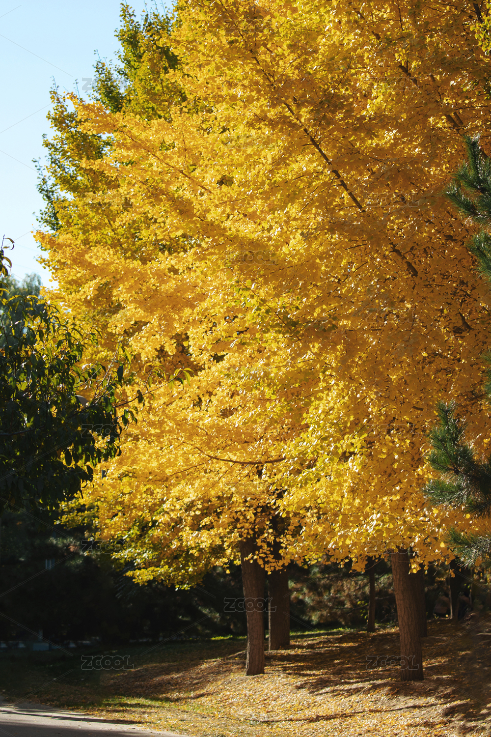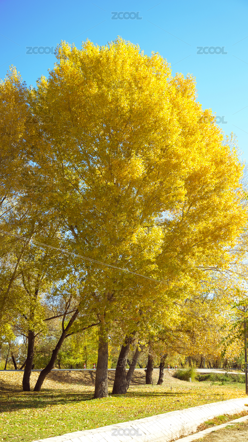 北京奥林匹克森林公园秋天金黄的的银杏树