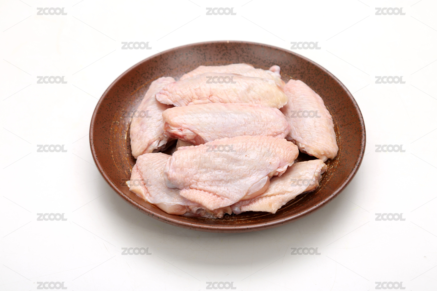 盘子里备用的生的鸡全翅食材