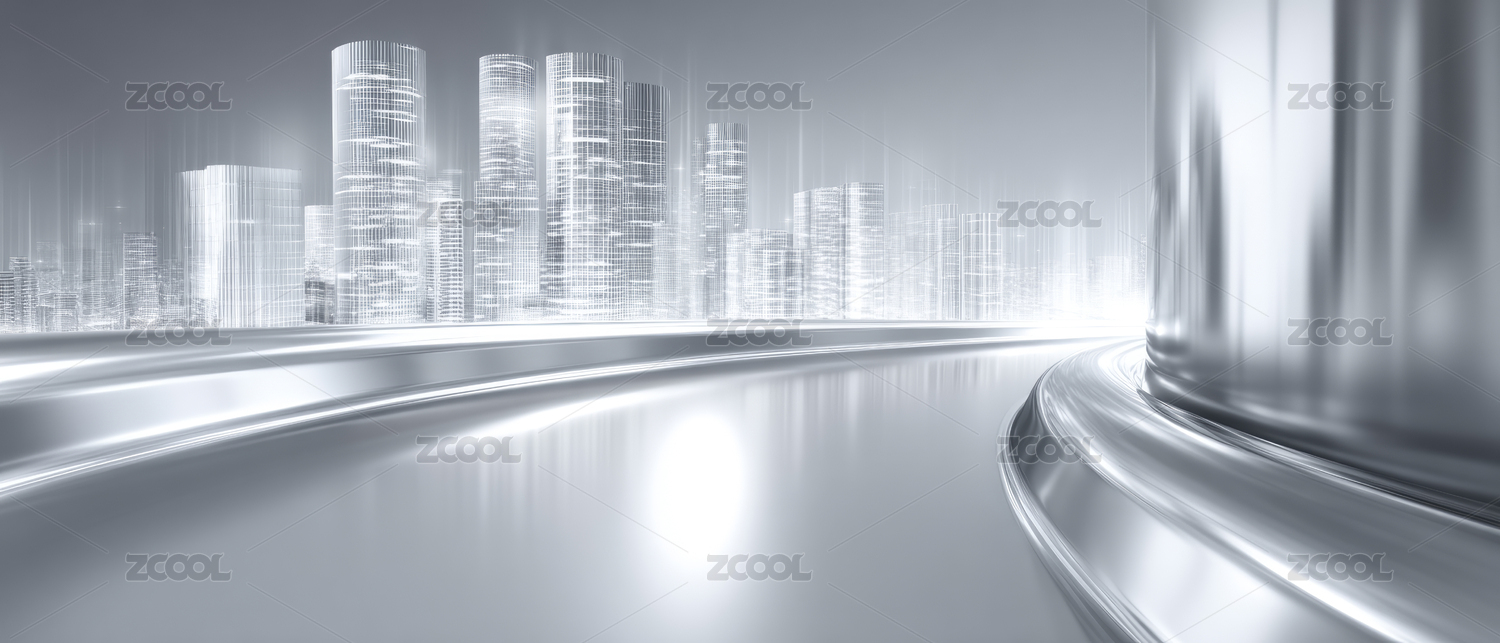白色科幻未来城市道路侧高楼群建筑3D插画