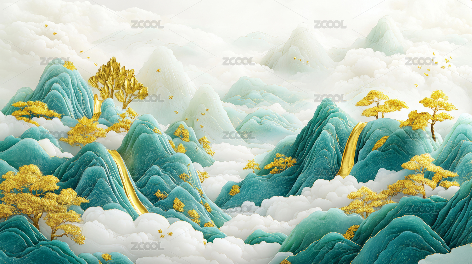 中国风,毛茸茸,流体,极简主义,干净,流线,高山,植物,中式建筑,曲线灵动
