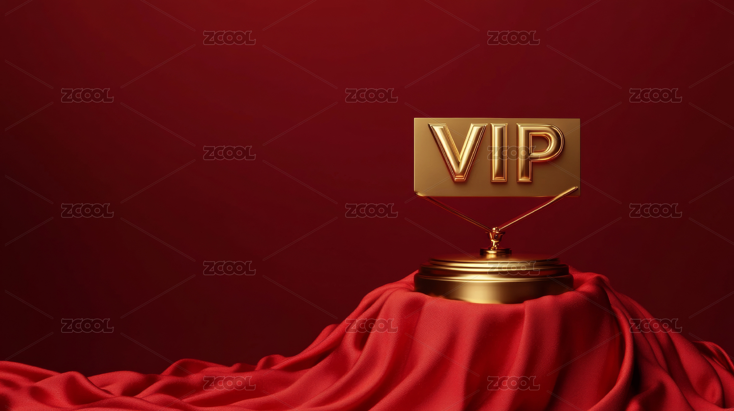 金色VIP牌置于红色绸缎台座