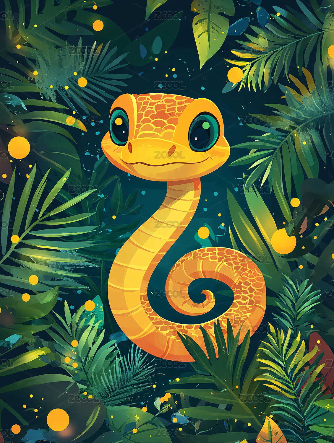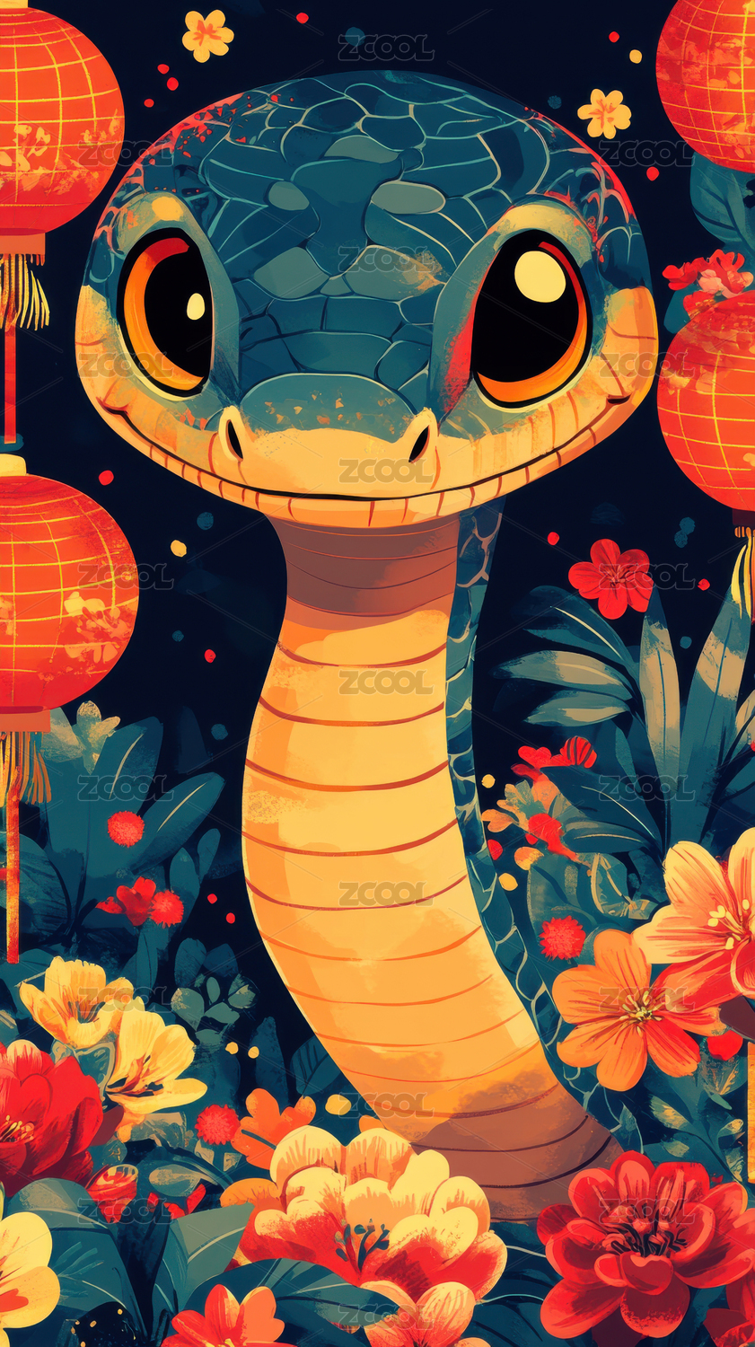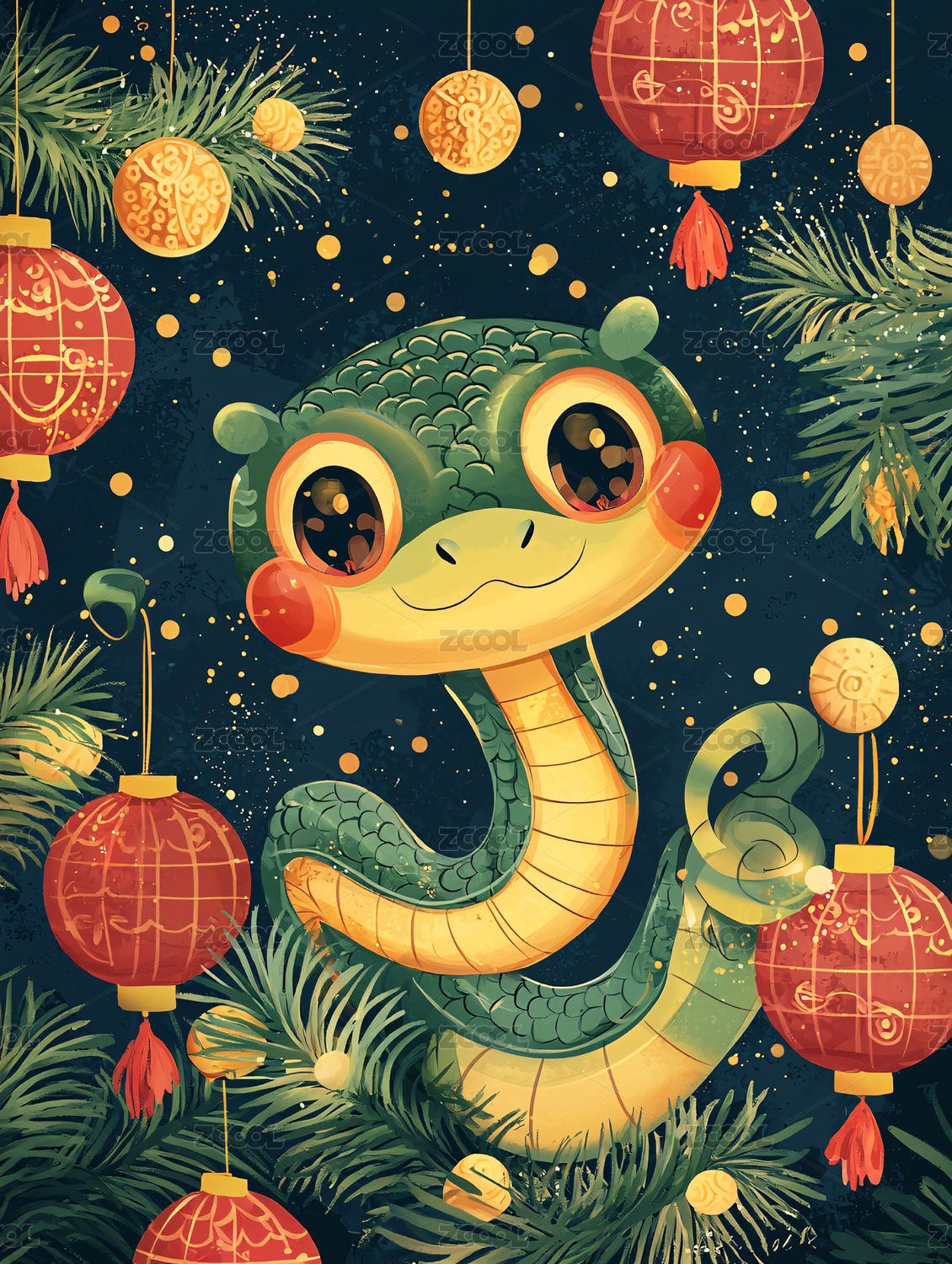 十二生肖蛇年卡通可爱的蛇IP设计春节背景