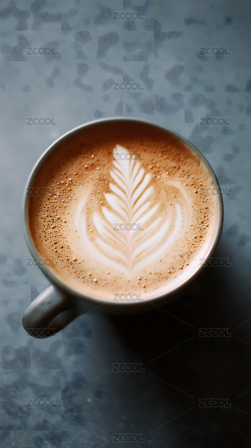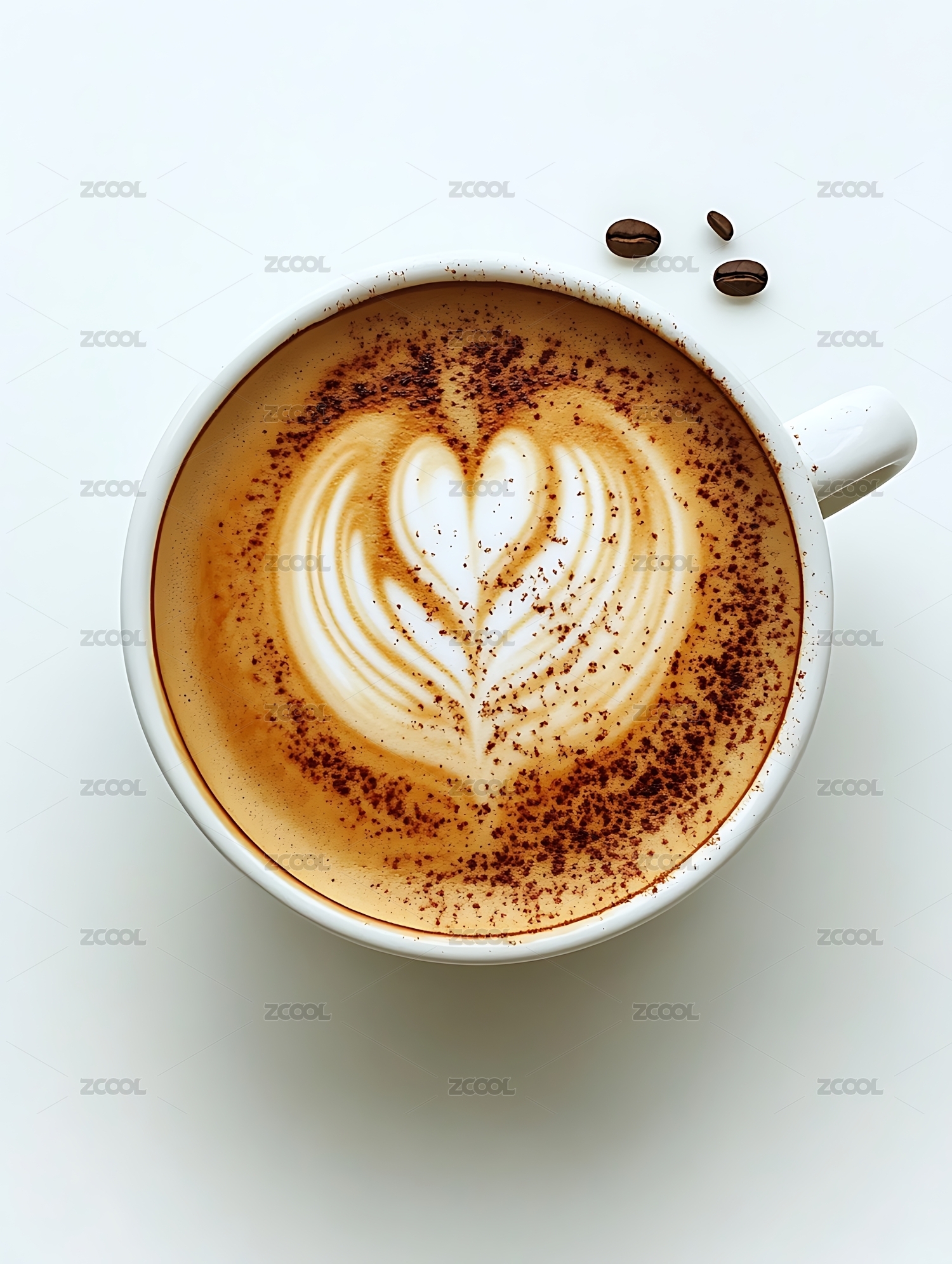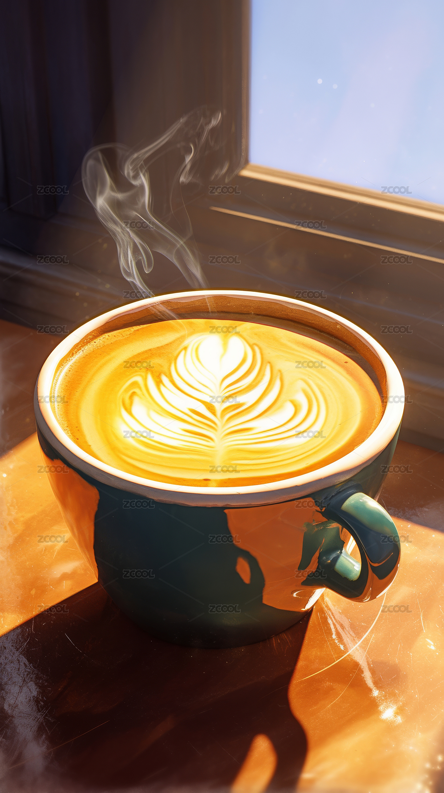 清新明亮一杯拉花浓稠牛奶咖啡饮料