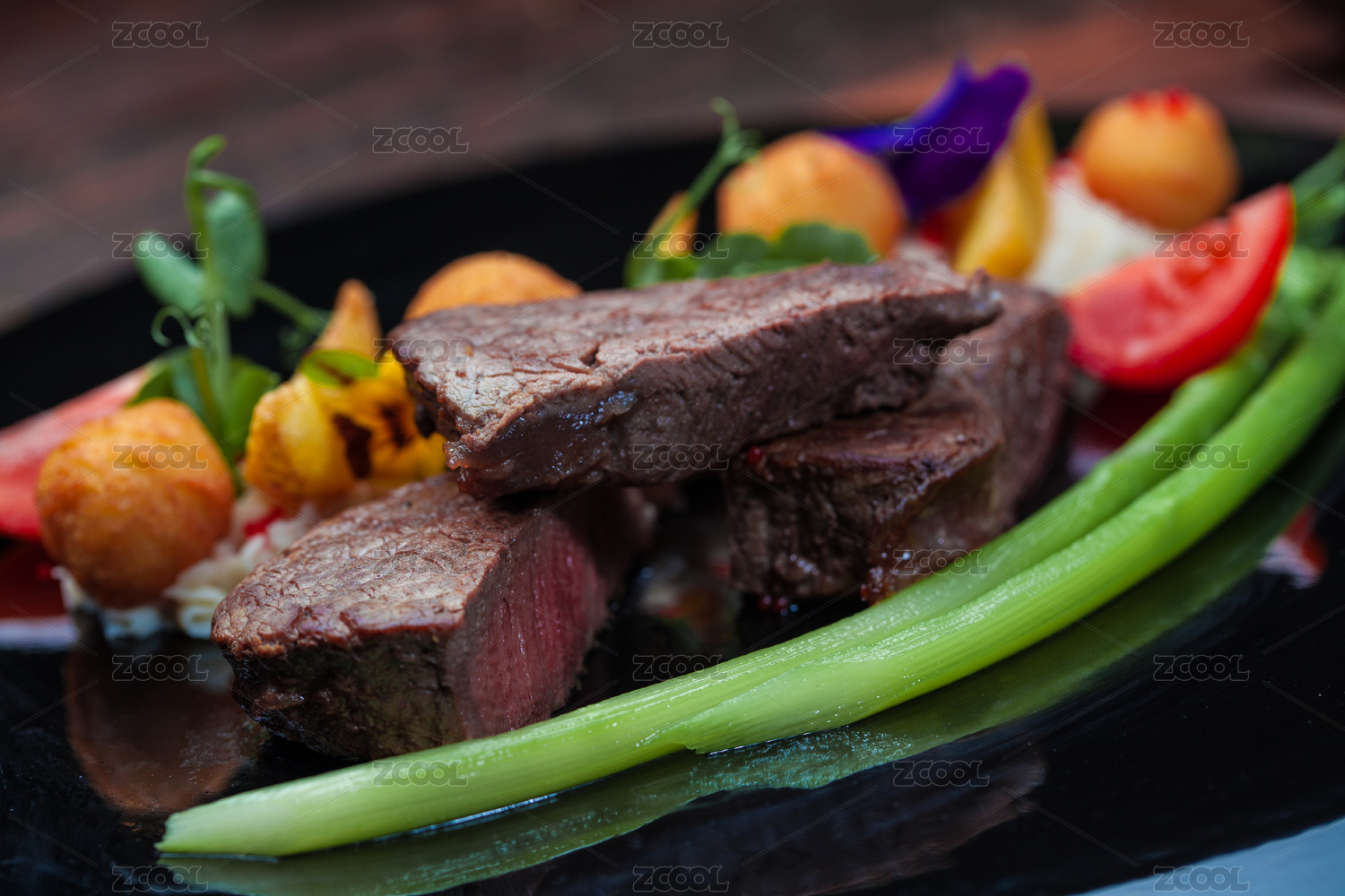 鲜嫩多汁营养美味的炭烤牛肉粒配红酒酿雪梨