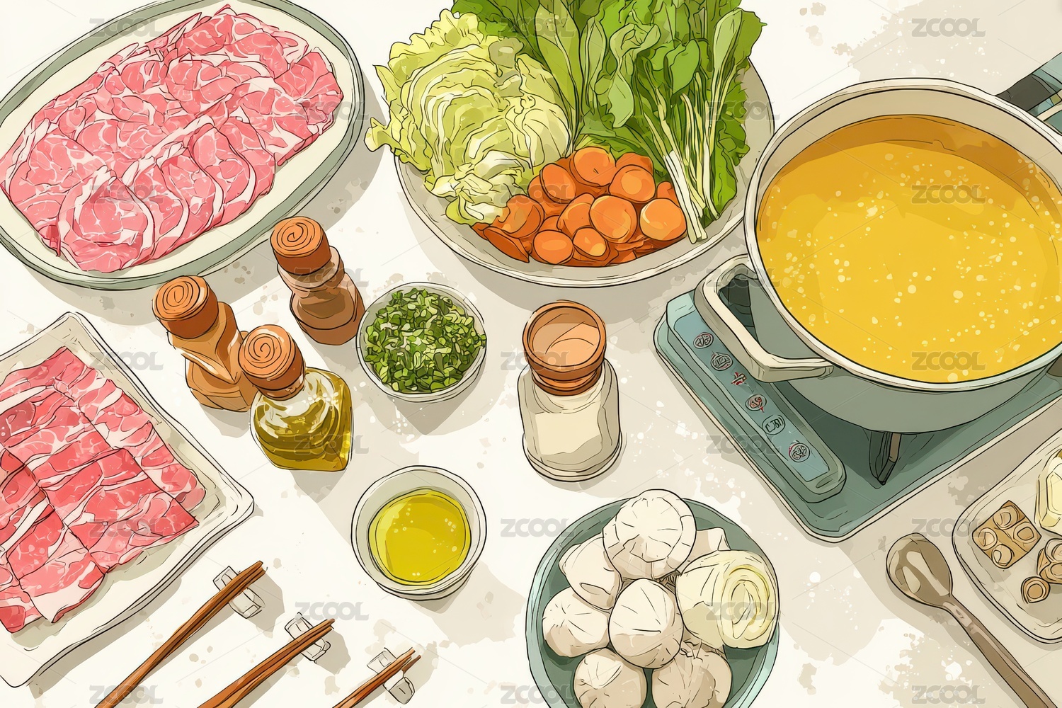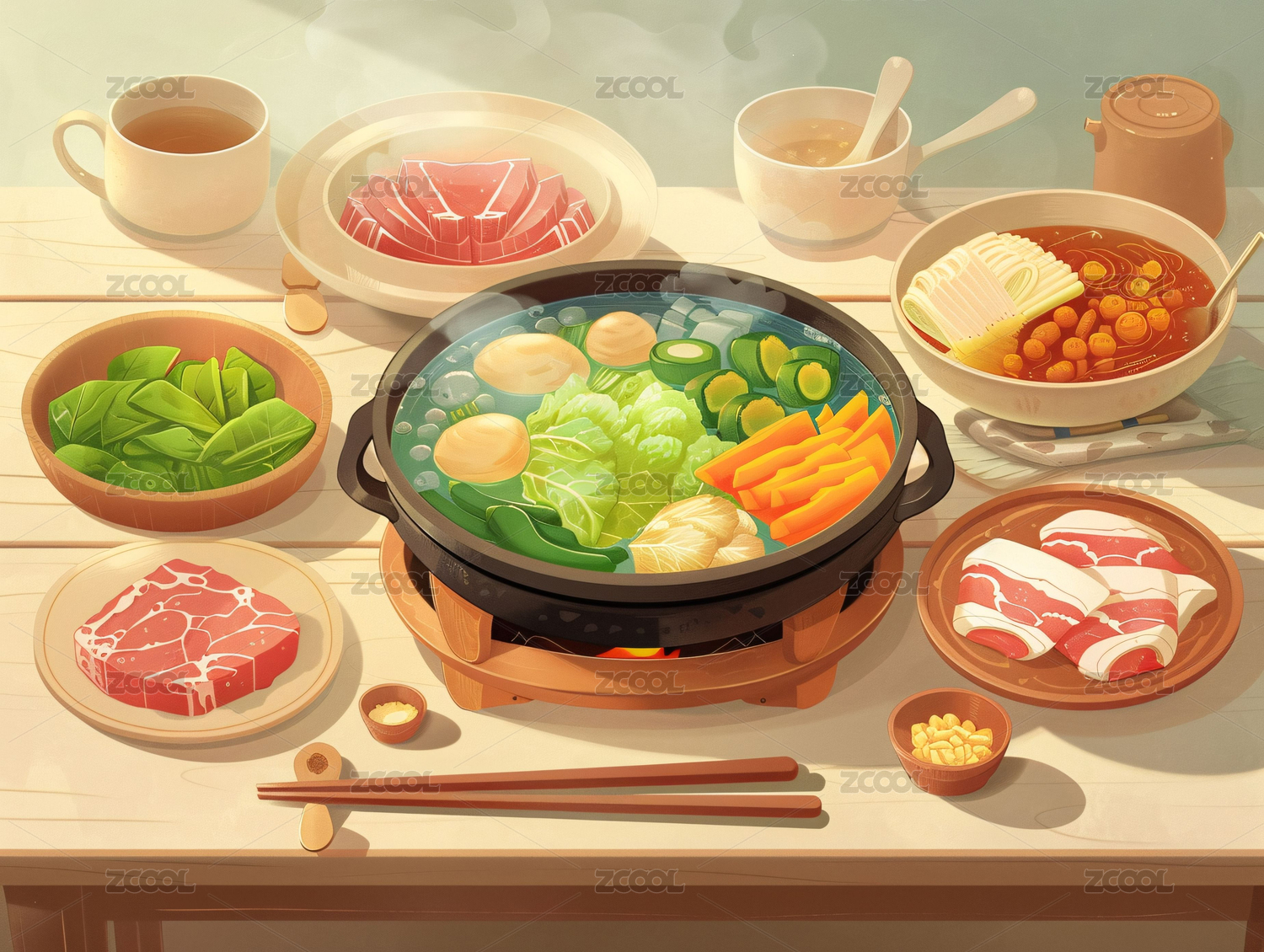 春节团圆年夜饭火锅国潮食物节日美食插画