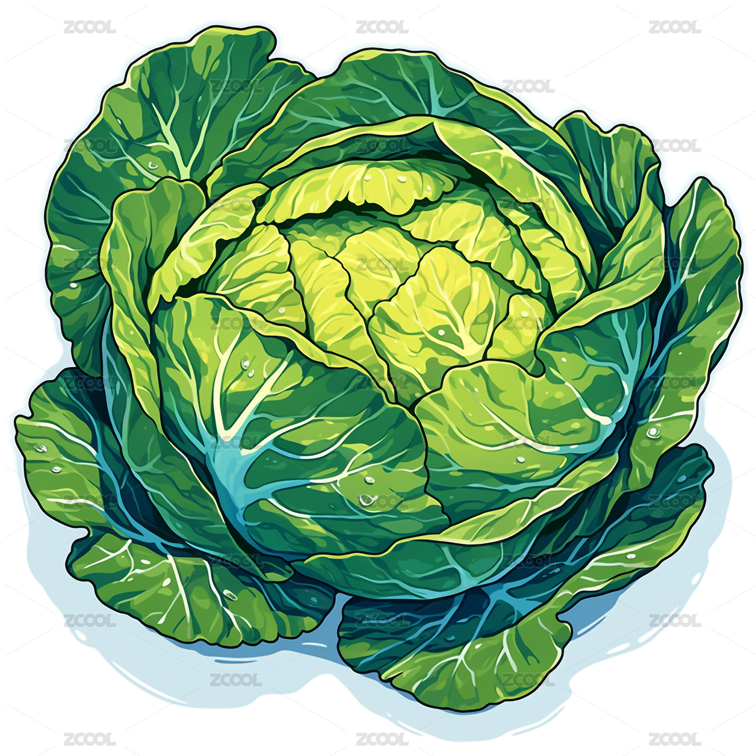 数码科技水彩卷心菜插画