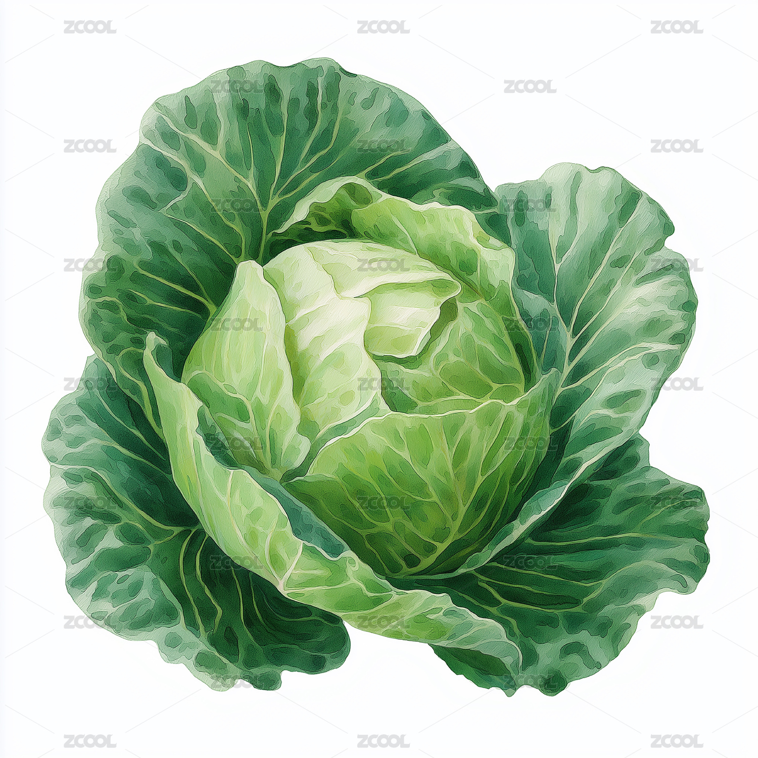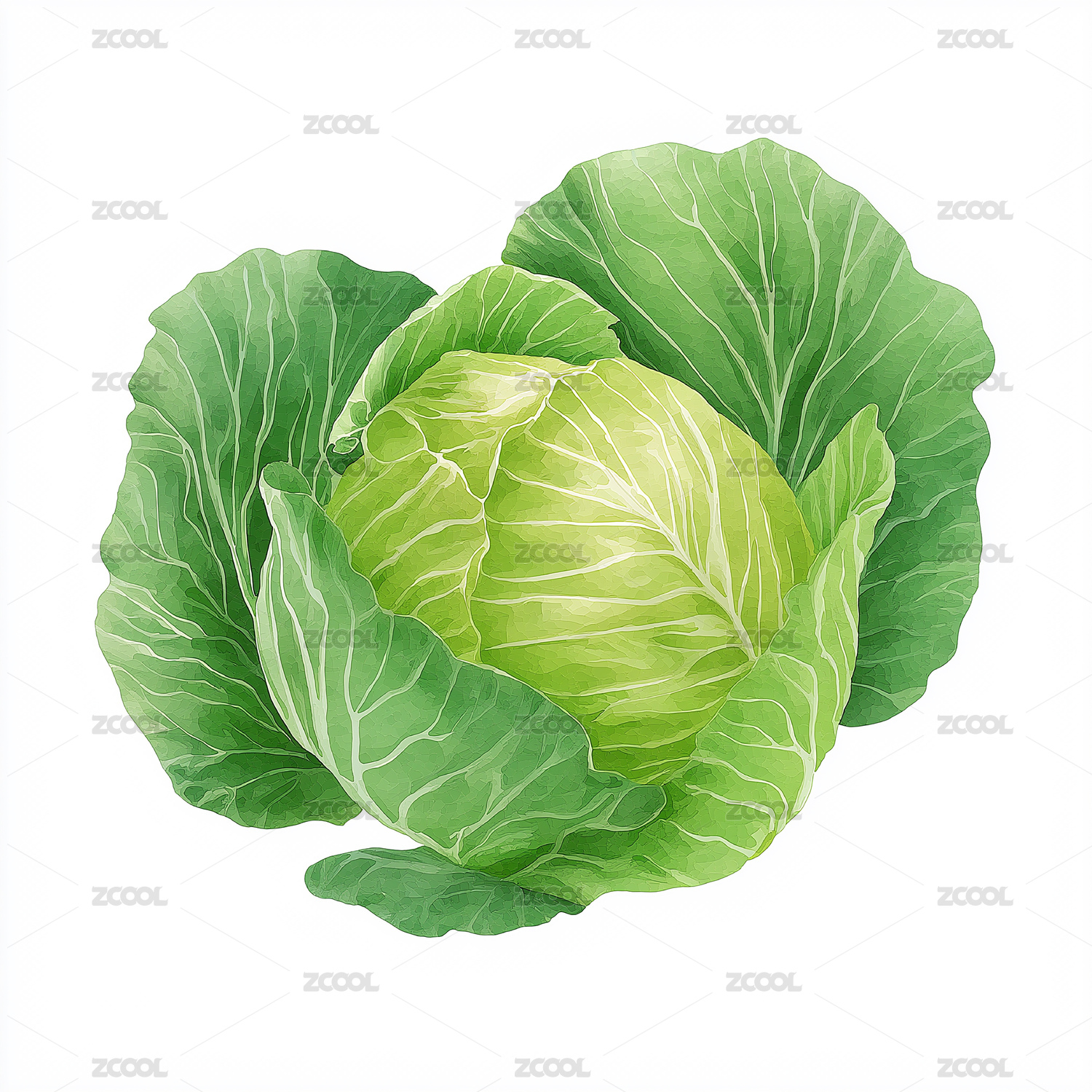写实包心菜水彩插画食材设计素材