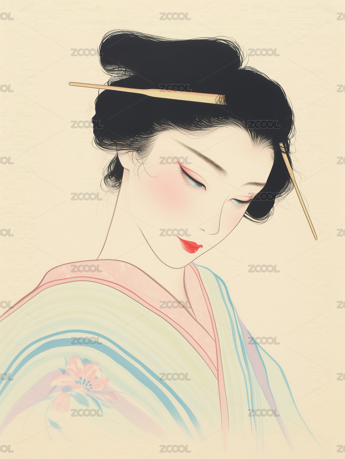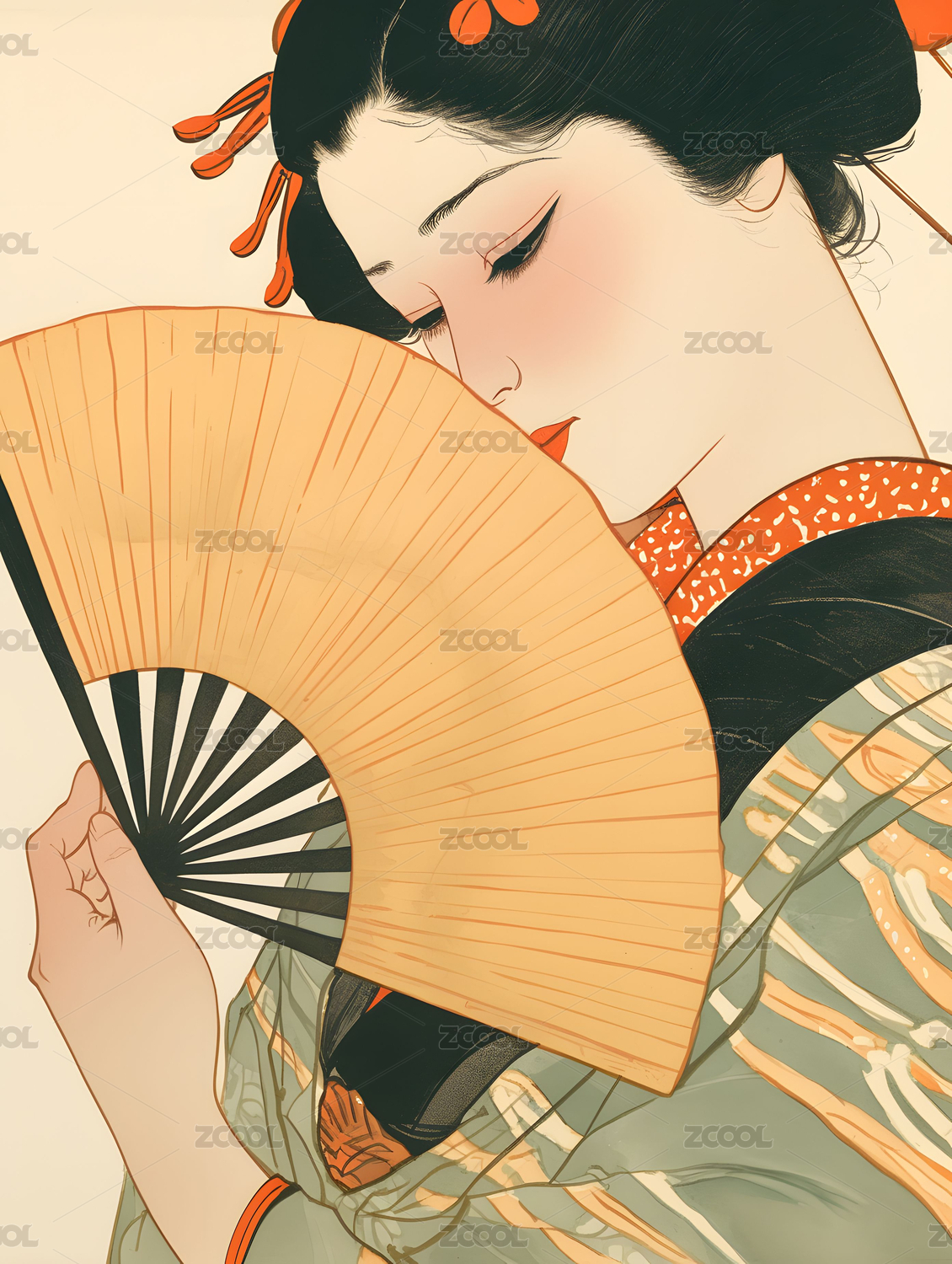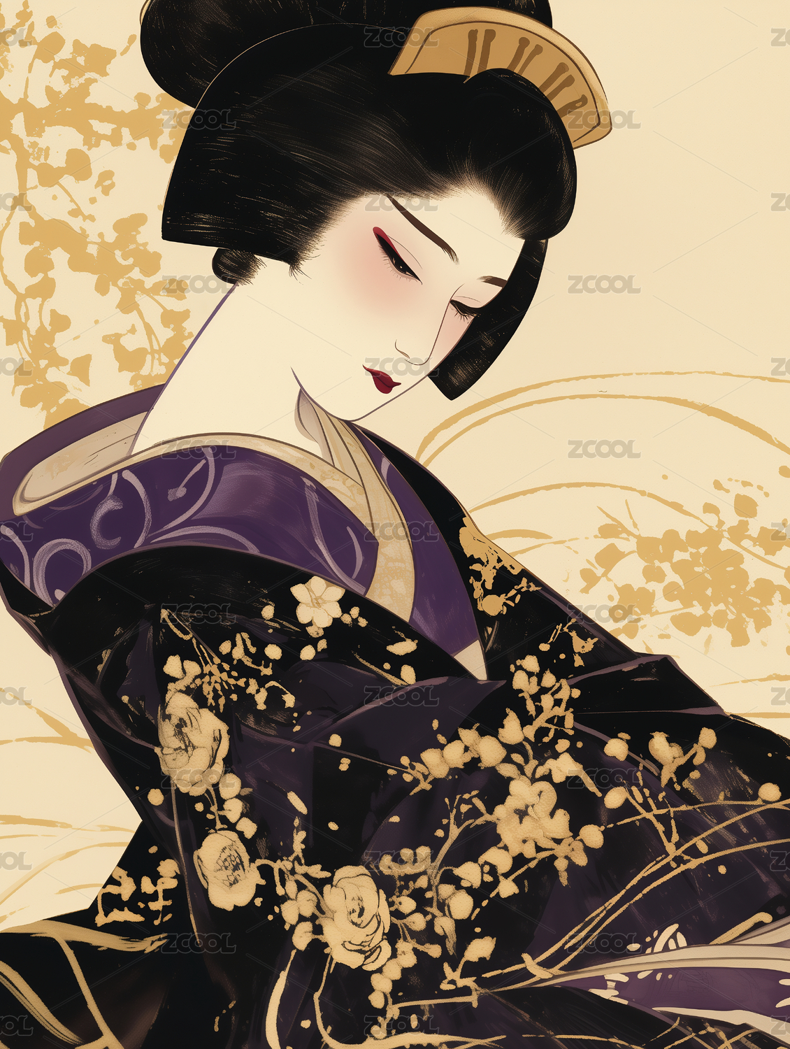 AIGCFG01,浮世绘,日漫,复古,插画,漫画,人物,和服,卡通,女人