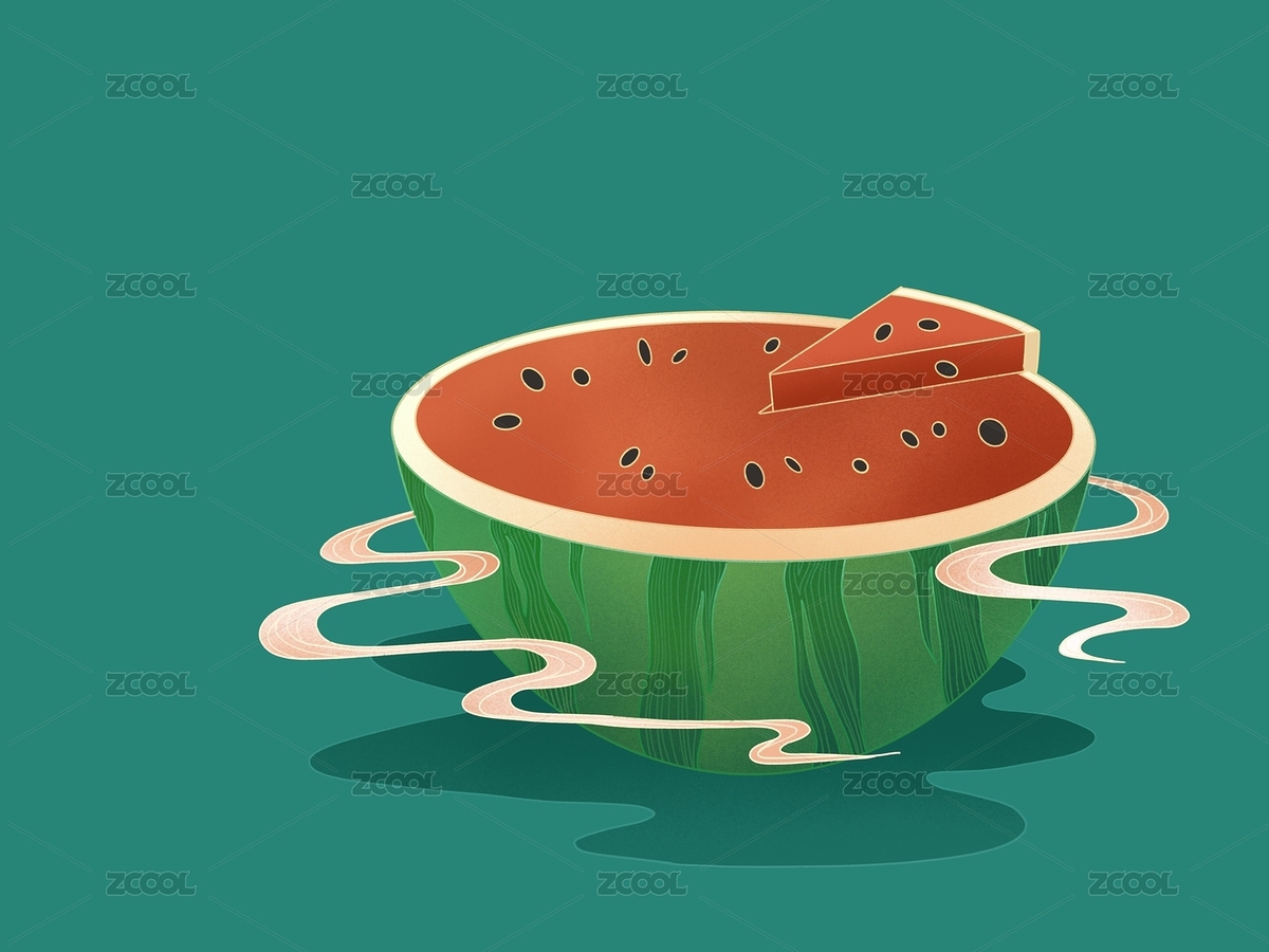 手绘卡通插画切开的西瓜