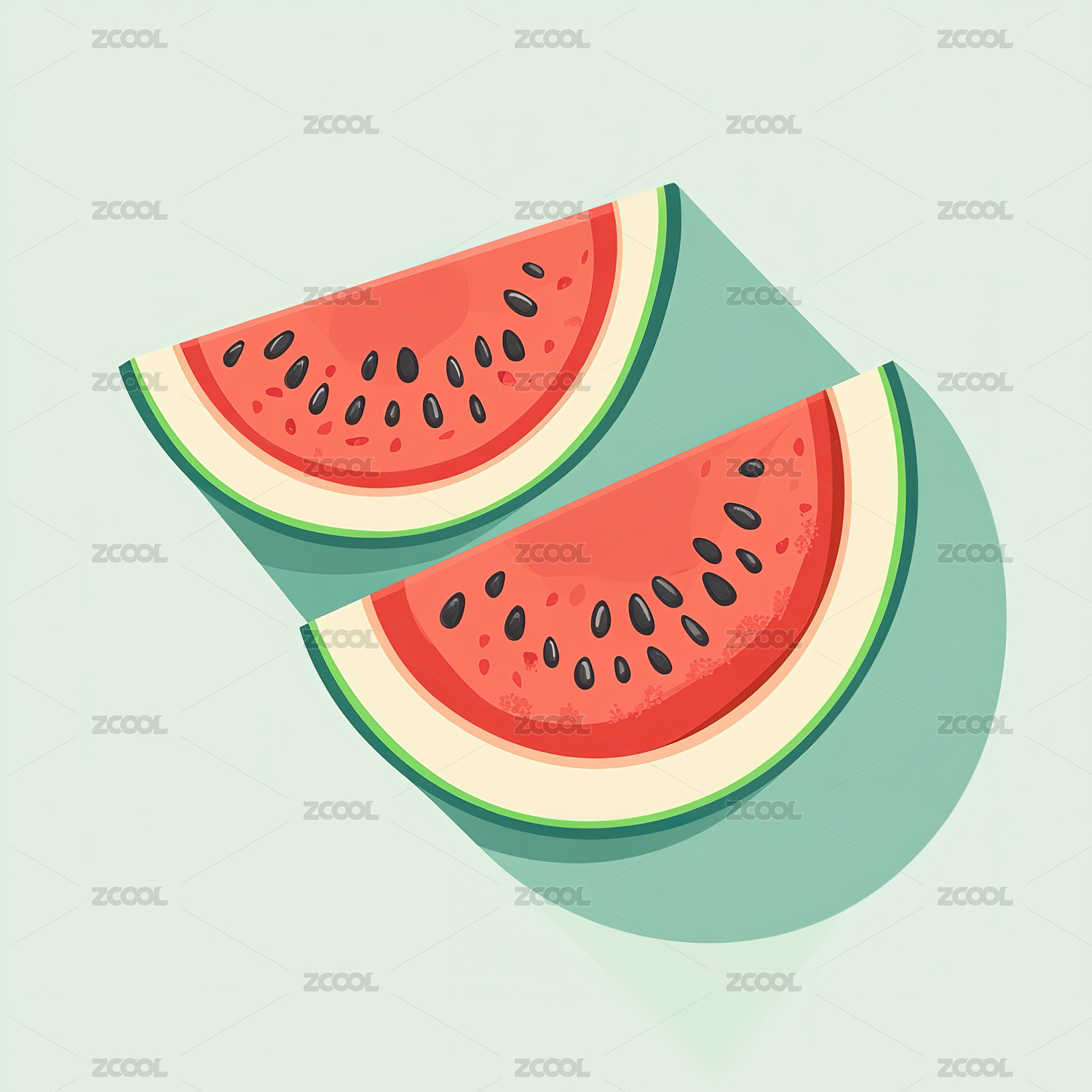 两片西瓜的平面插图