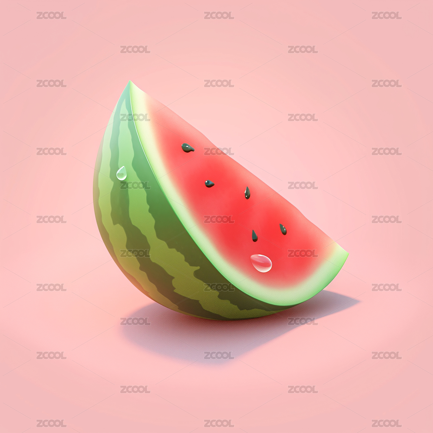 粉色背景下盘子里的西瓜插画元素