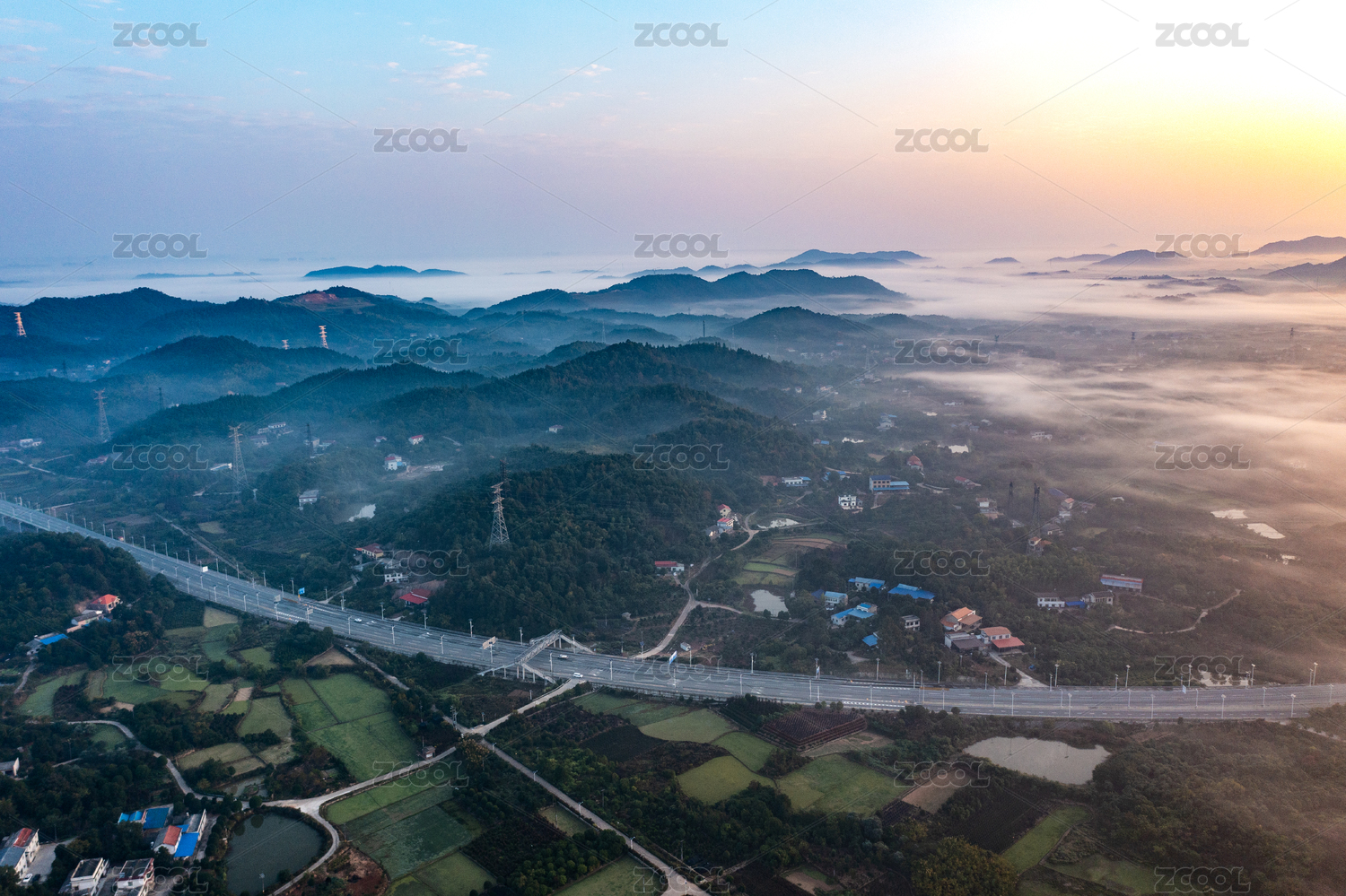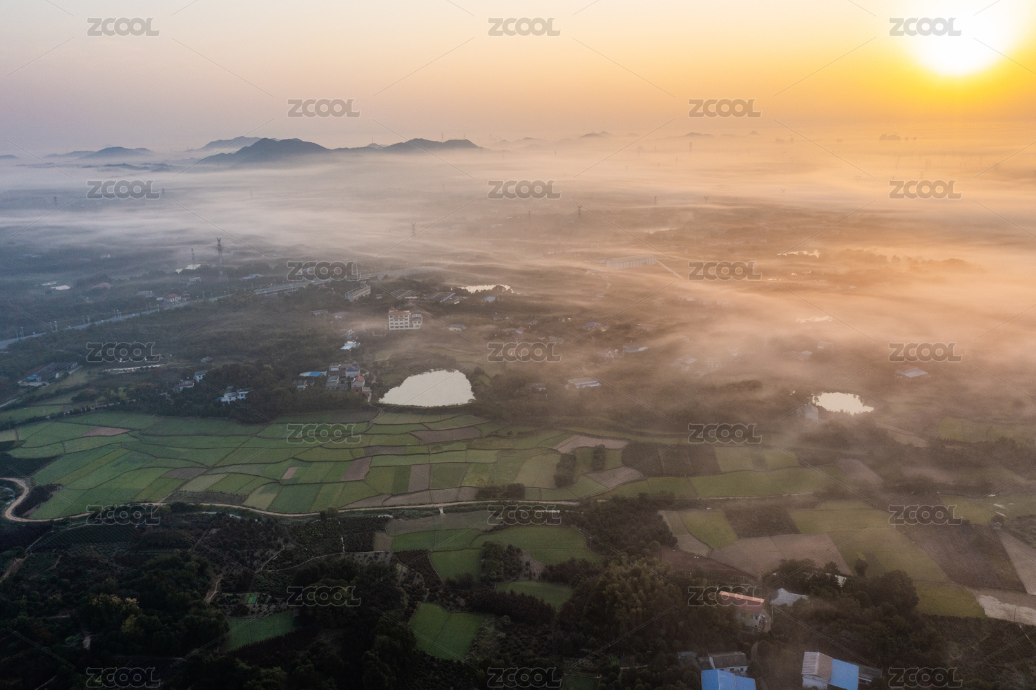 长沙,航拍,跳马镇,晨雾,日出,秋天,秋季,石燕湖,乡村,农村