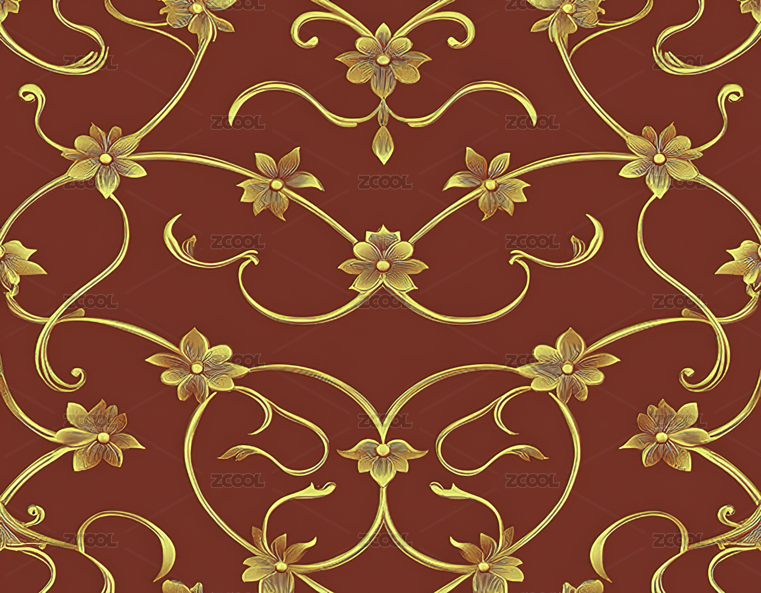 无缝金色传统喜庆花纹图案
