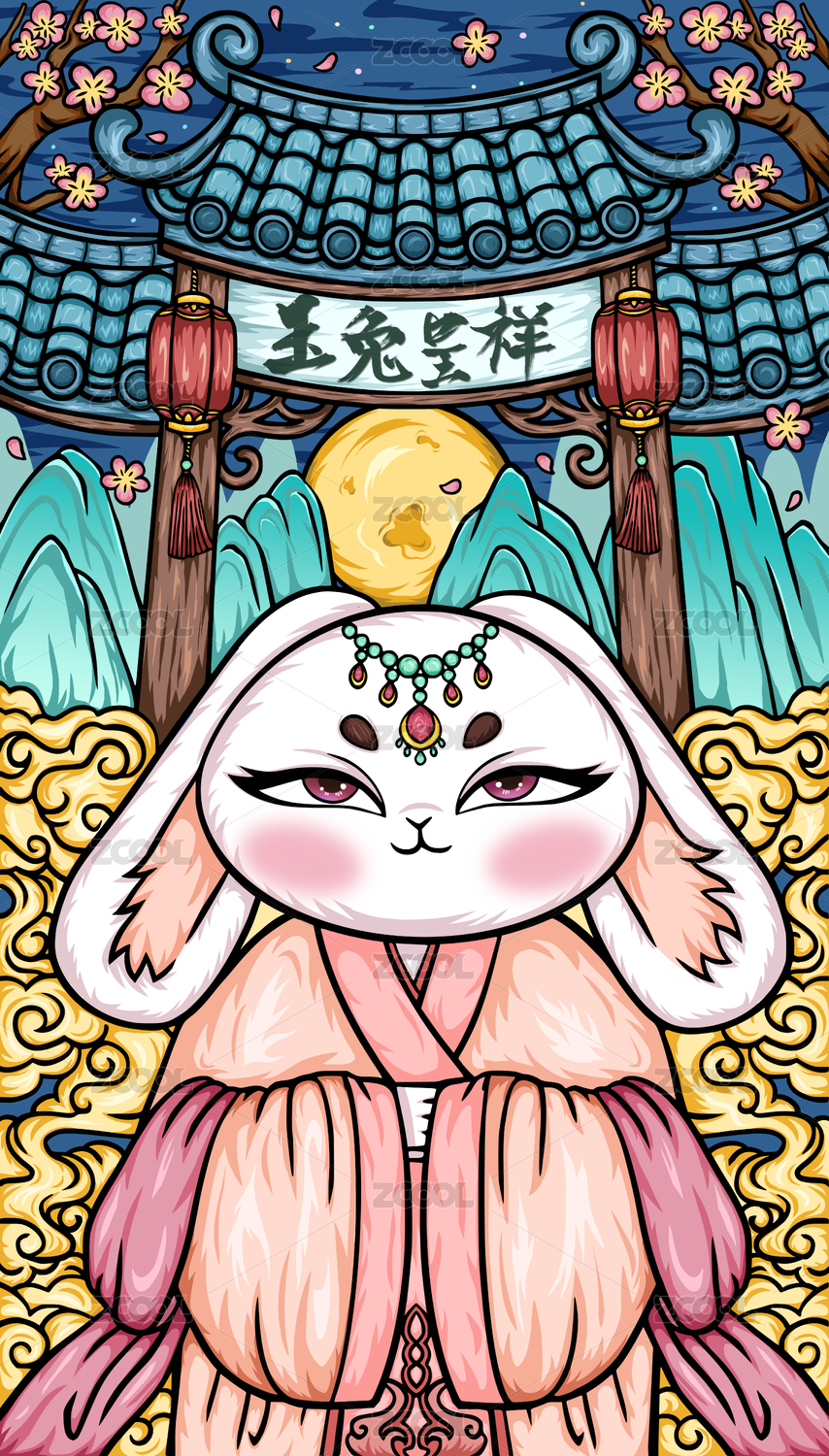 手绘卡通玉兔插画设计