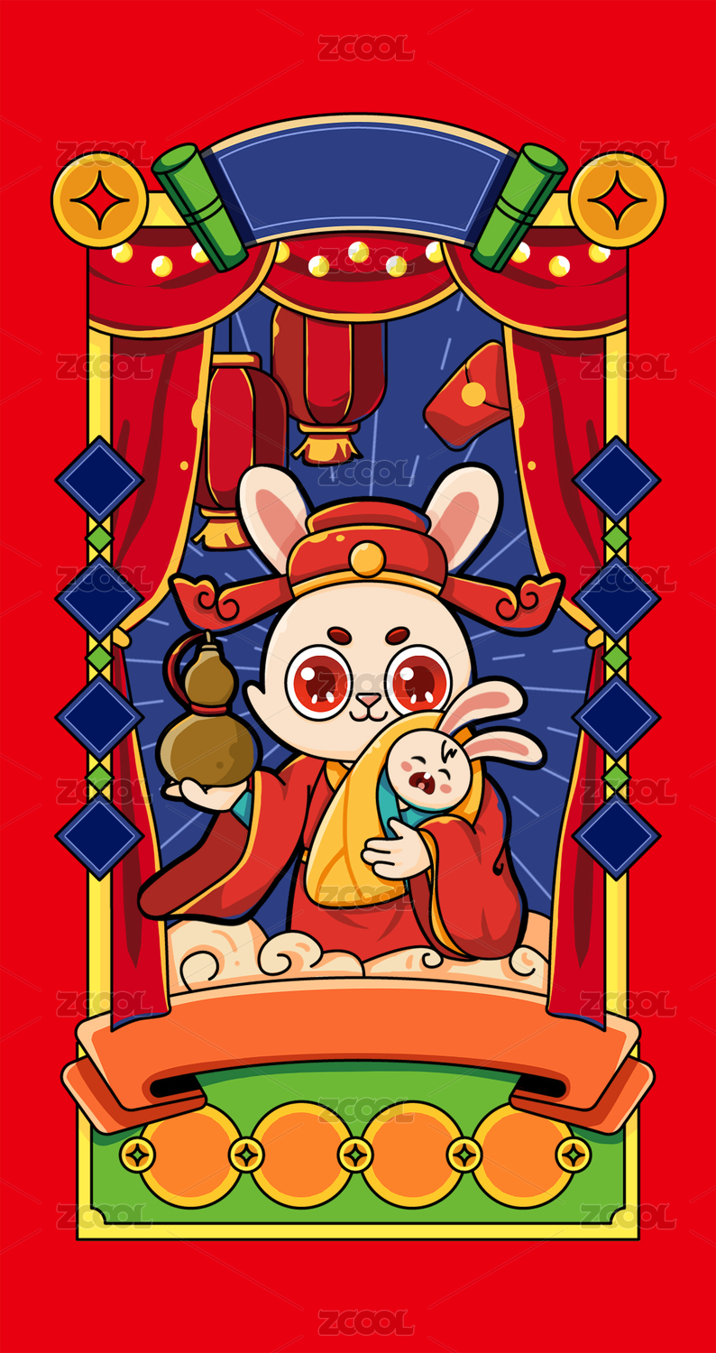 兔年春节兔子国潮插画