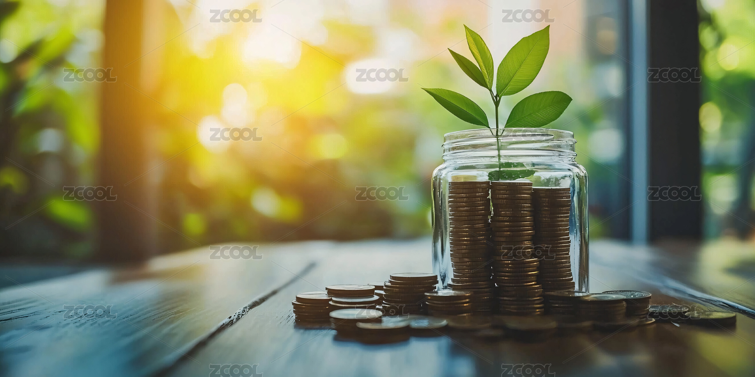 硬币与绿植的生长寓意