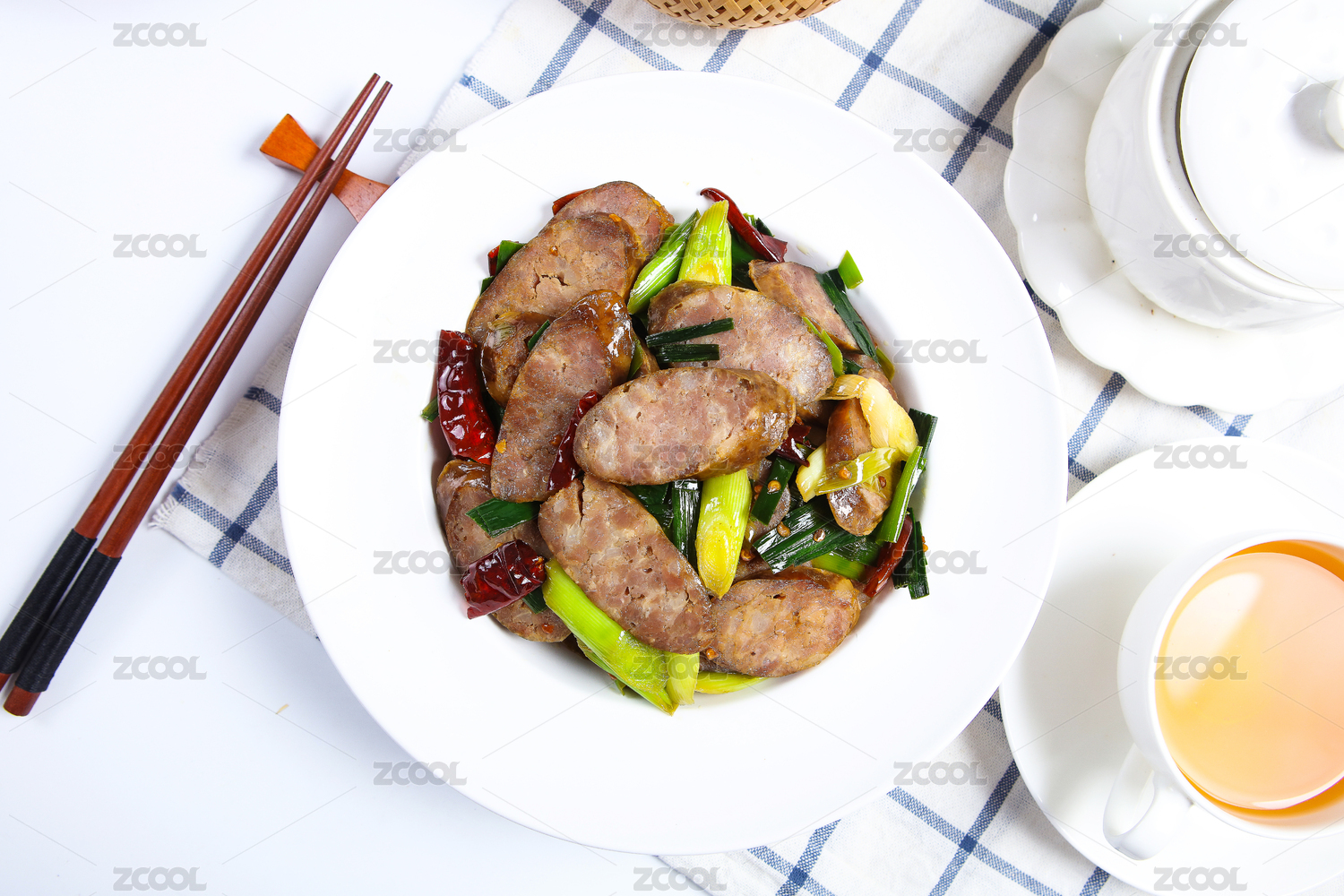 快餐外卖美食小吃蒜苗炒烤鸭