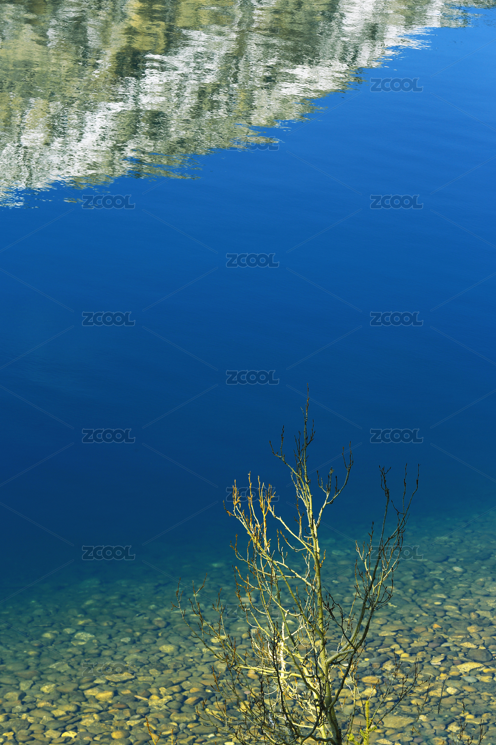 四川省阿坝州九寨沟-湖面上的浮木景观