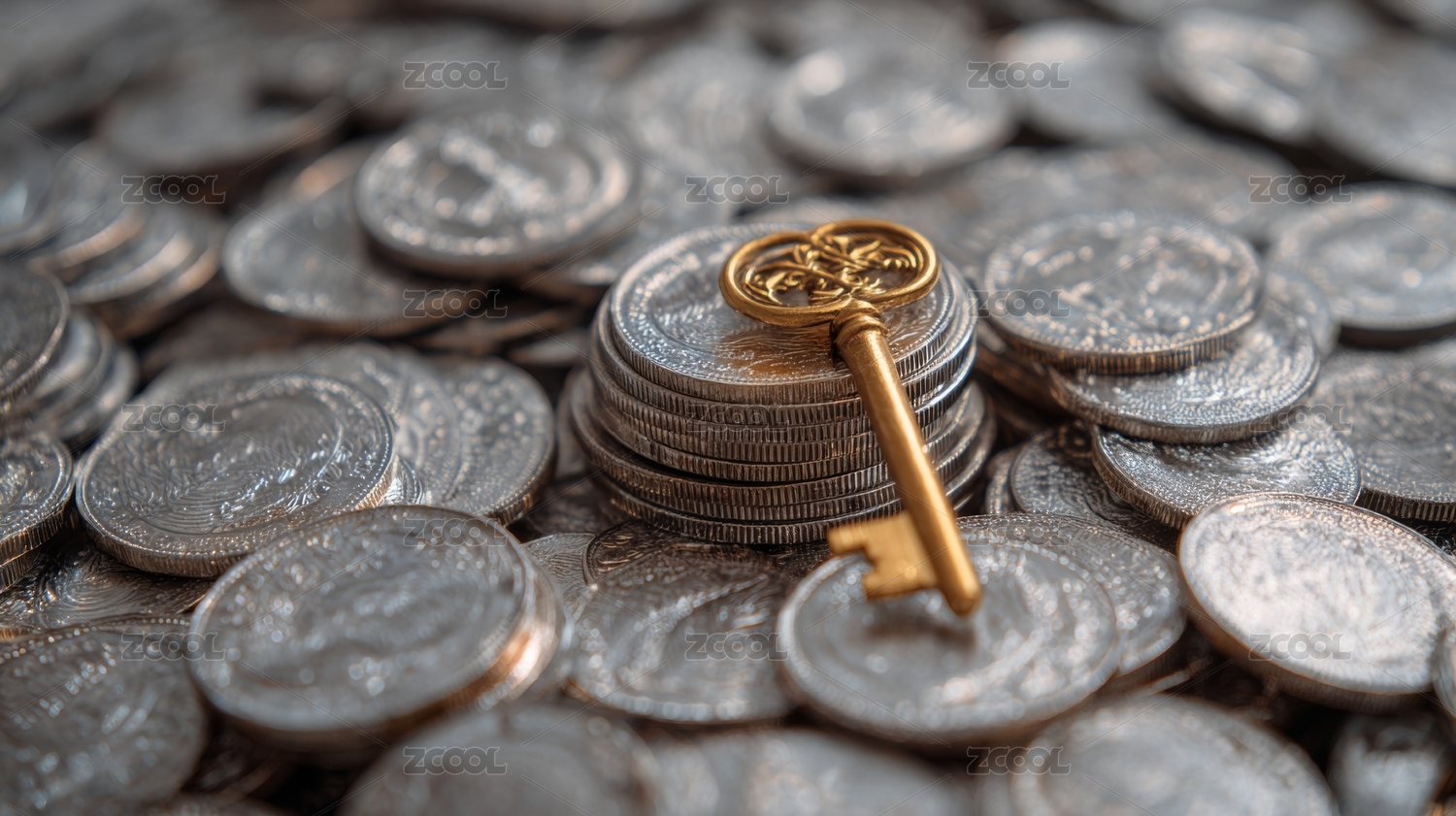大量金币围绕着一把钥匙