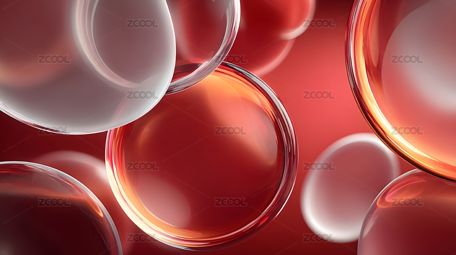 红色背景下的透明球体