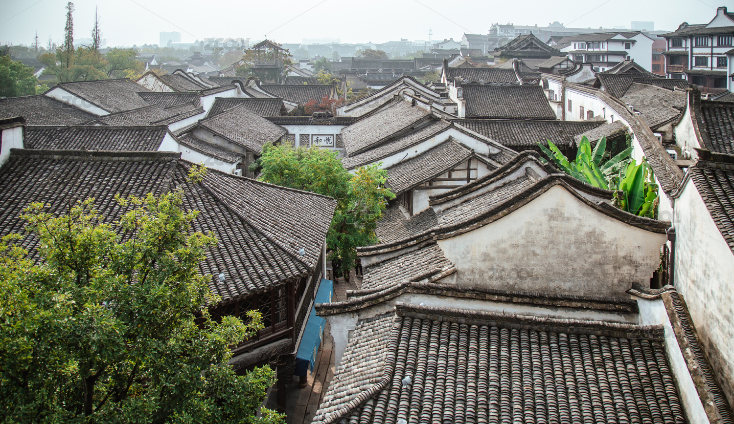 俯瞰浙江嘉兴市濮院时尚古镇江南水乡风光