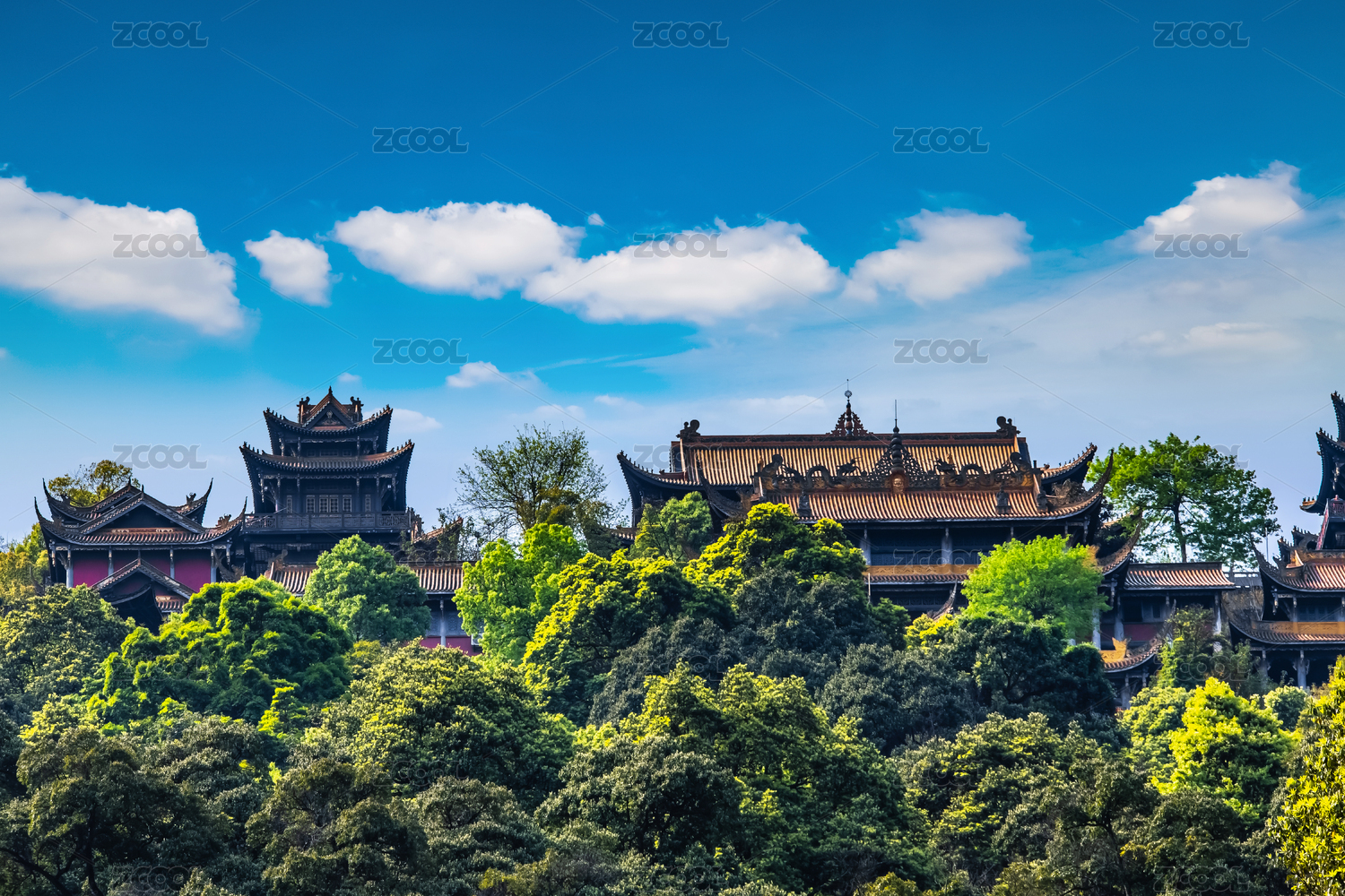 落日余晖下的重庆鸿恩寺森林公园鸿恩阁