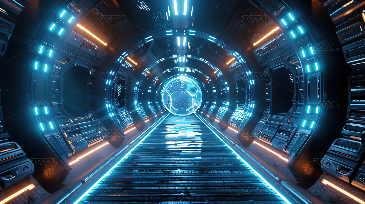 3D渲染的科幻延伸背景,空间站飞船的走廊