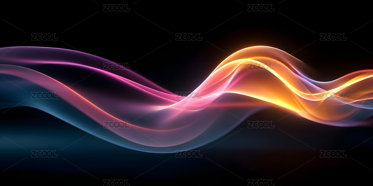 黑色背景下的紫色渐变曲线波浪抽象科技背景