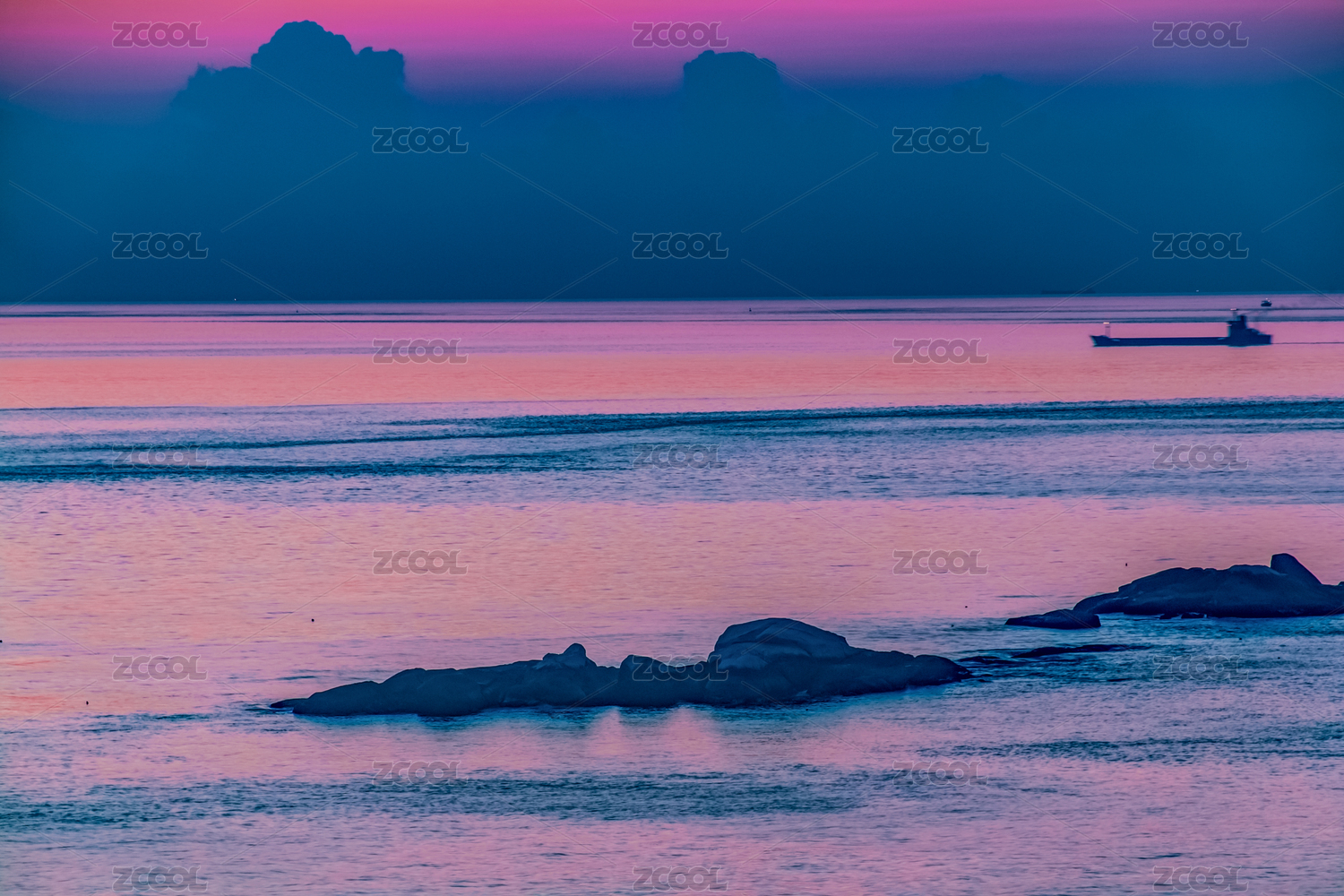 惠州盐洲湾仔岩石海滩和盲婆岭朝霞风光