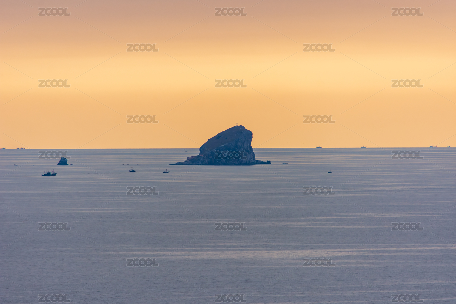 辽宁省大连市棒锤岛风景区的渔船和海岛