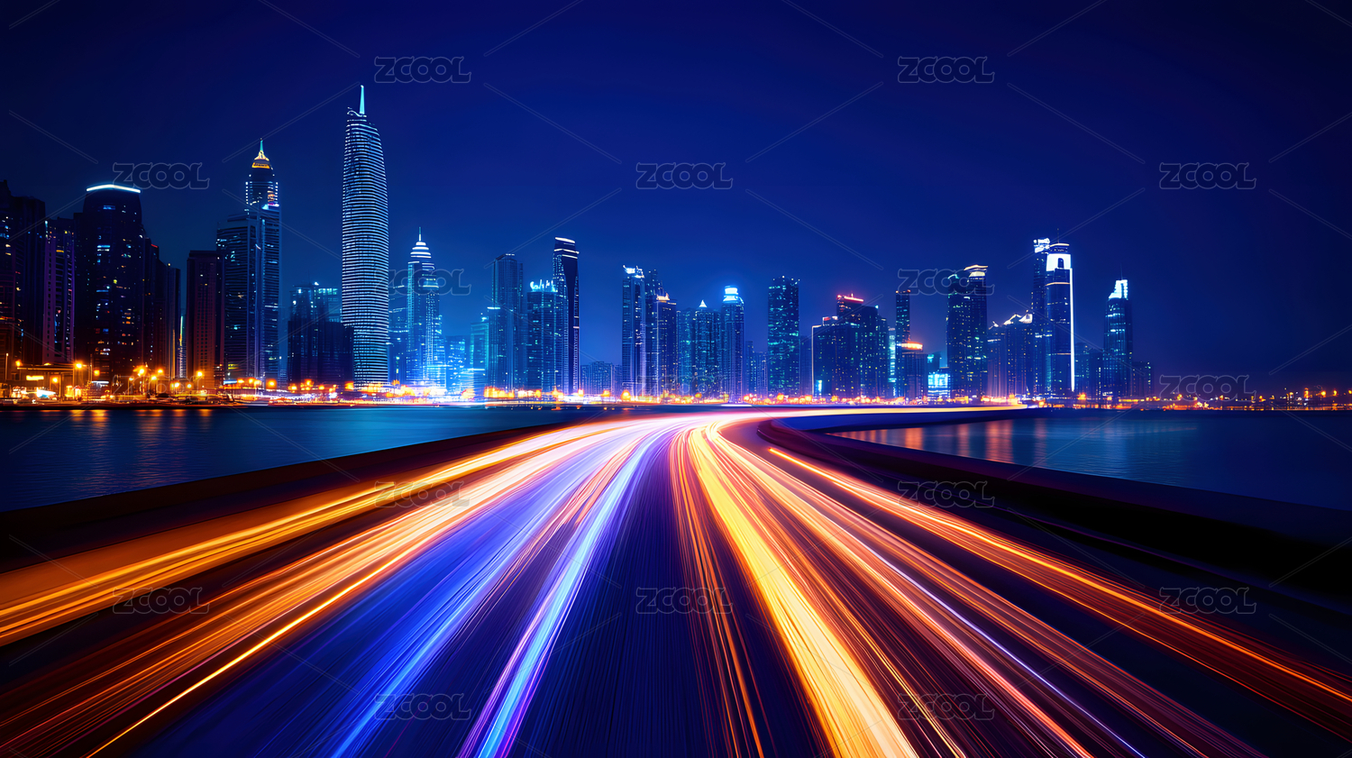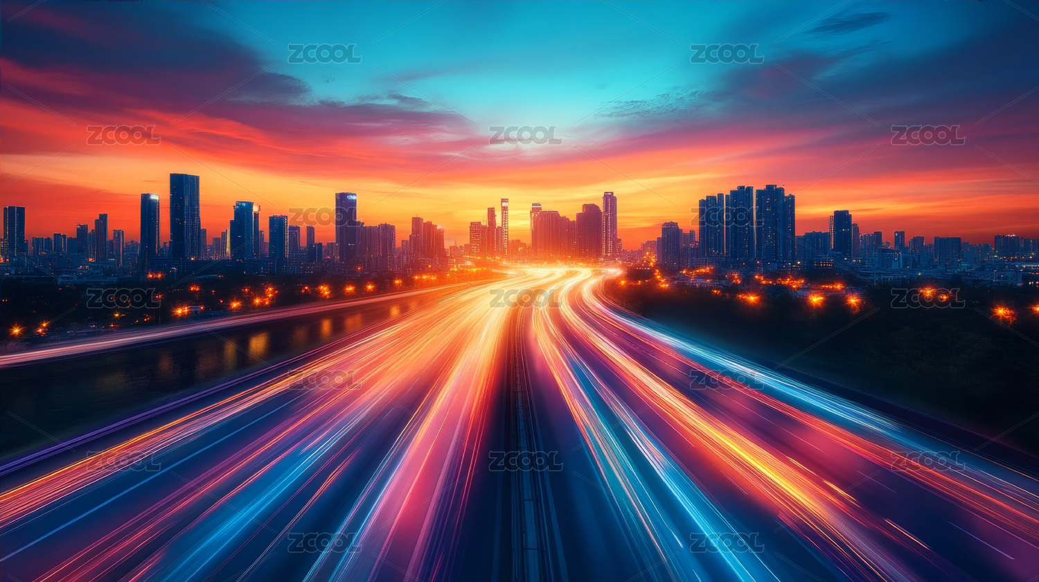 迅速,户外,城市,运输,长时间曝光,路,夜晚,光轨,行动,运动模糊