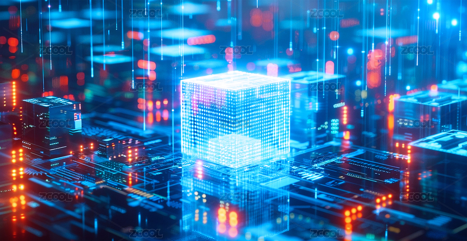 AI科技磨砂玻璃全息图魔方立方体大模型