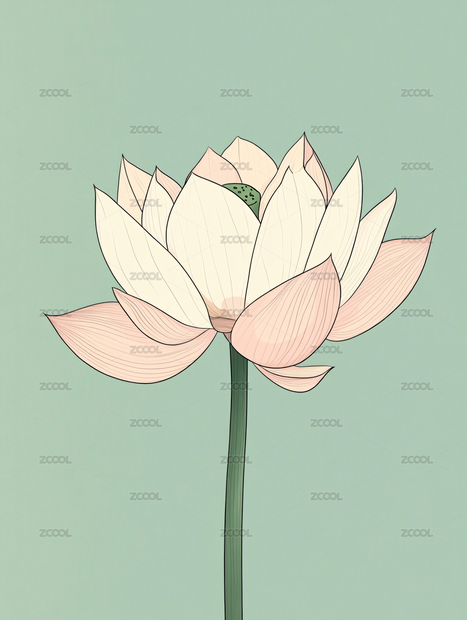 淡粉色莲花素描图
