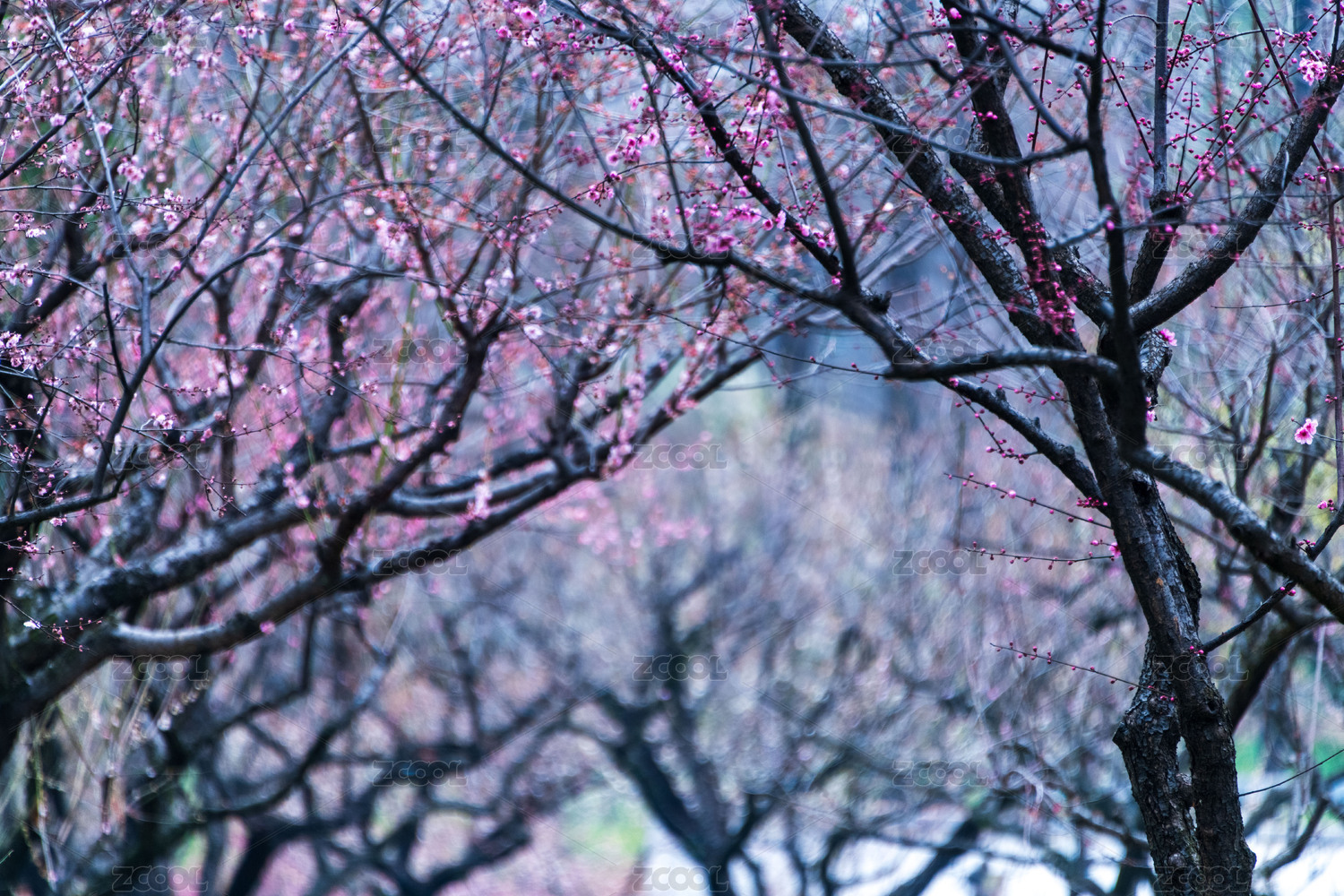 雾天粉色梅花特写