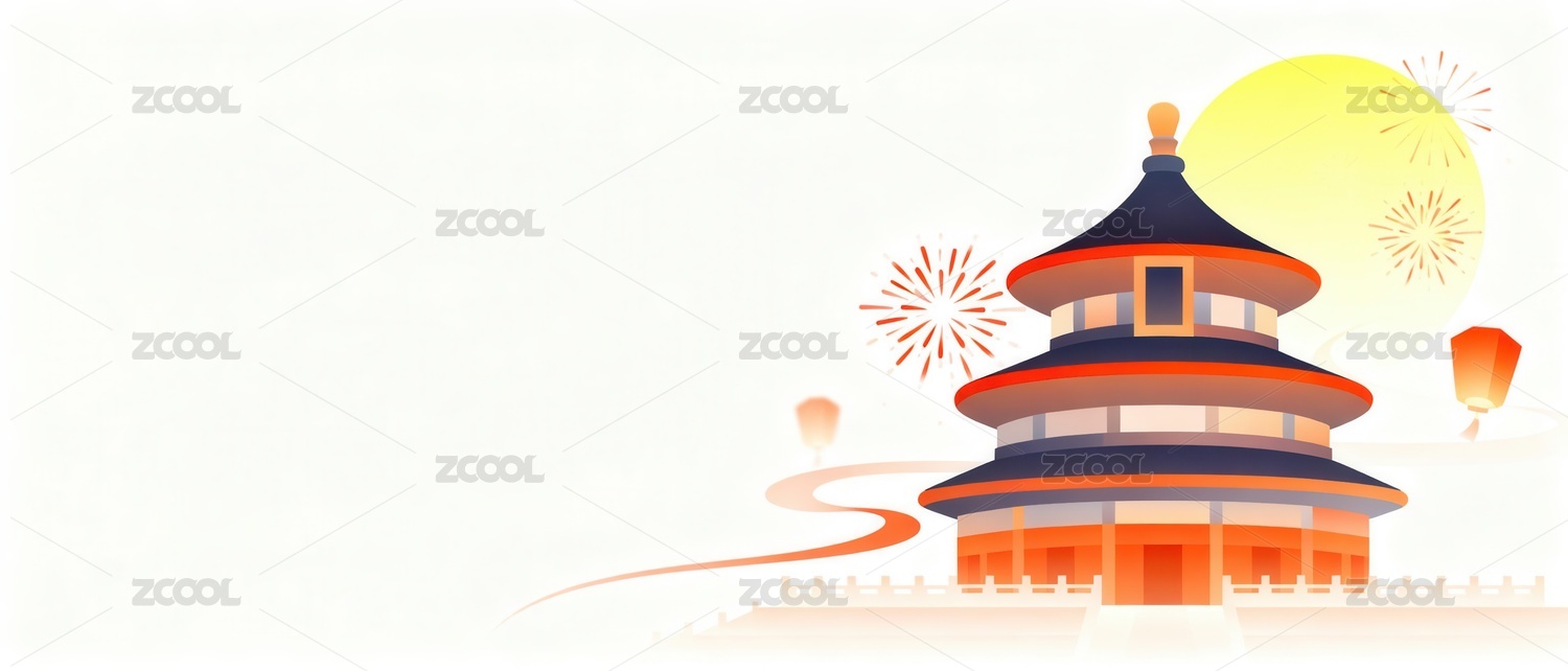 国庆节日天坛花朵手绘插画
