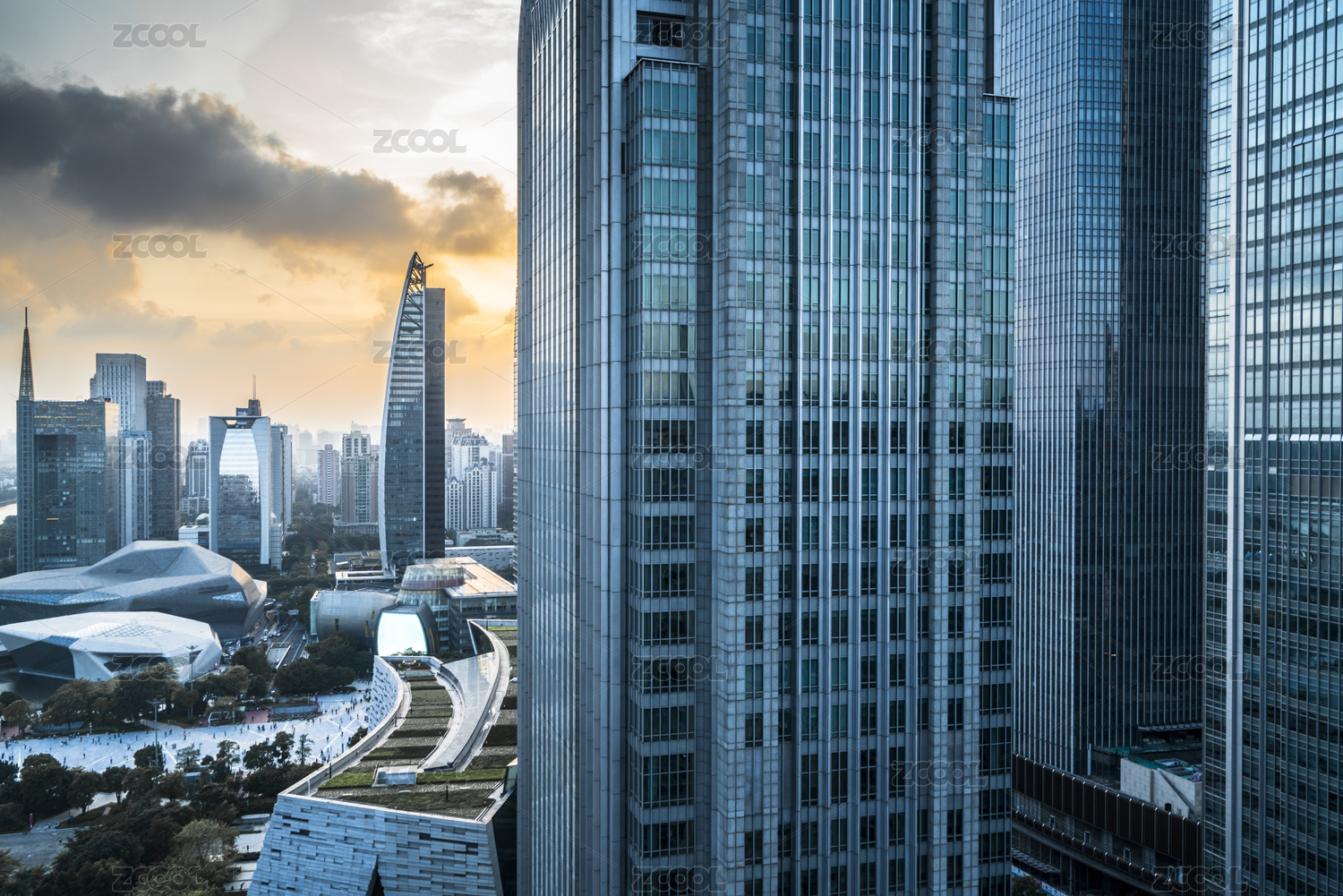 航拍视角鸟瞰广州珠江新城白昼的会展中心