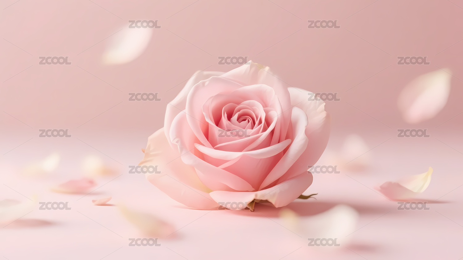 粉色玫瑰与花瓣飞舞场景