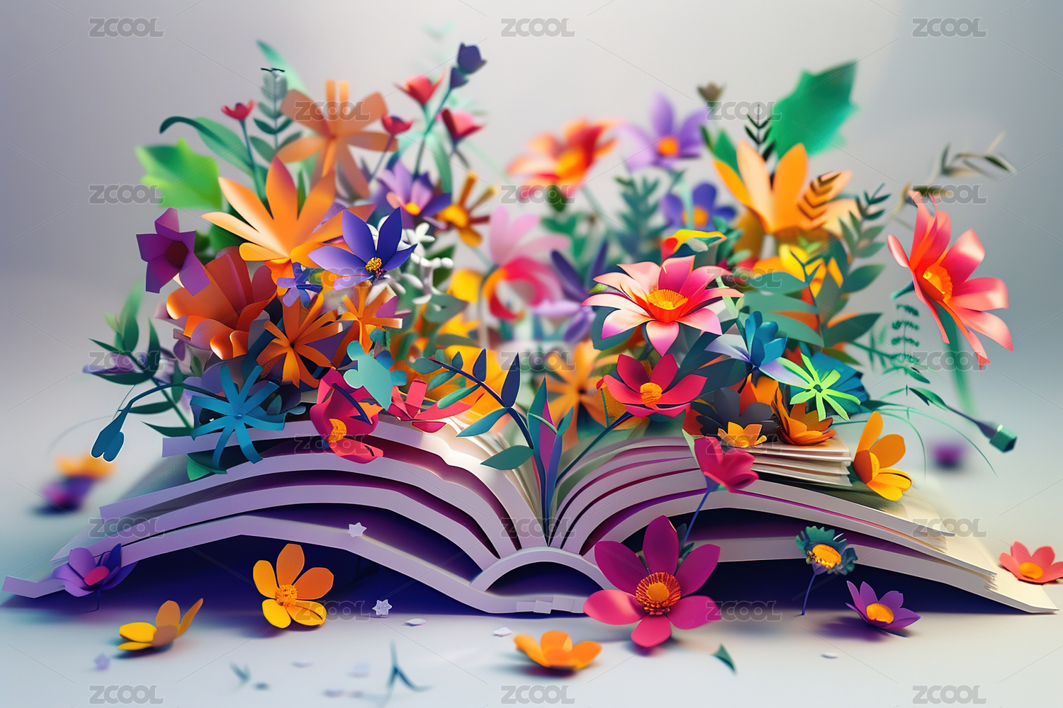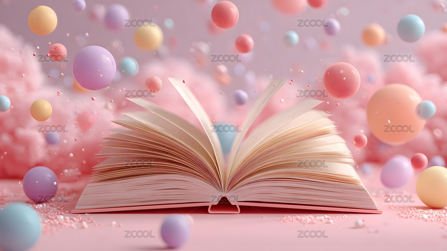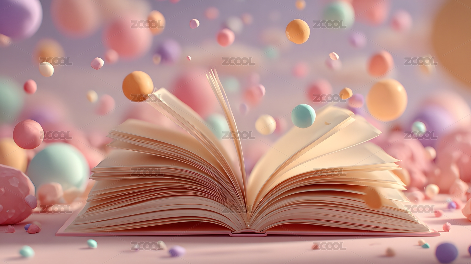 梦幻书本飘浮彩色泡泡甜美童话氛围