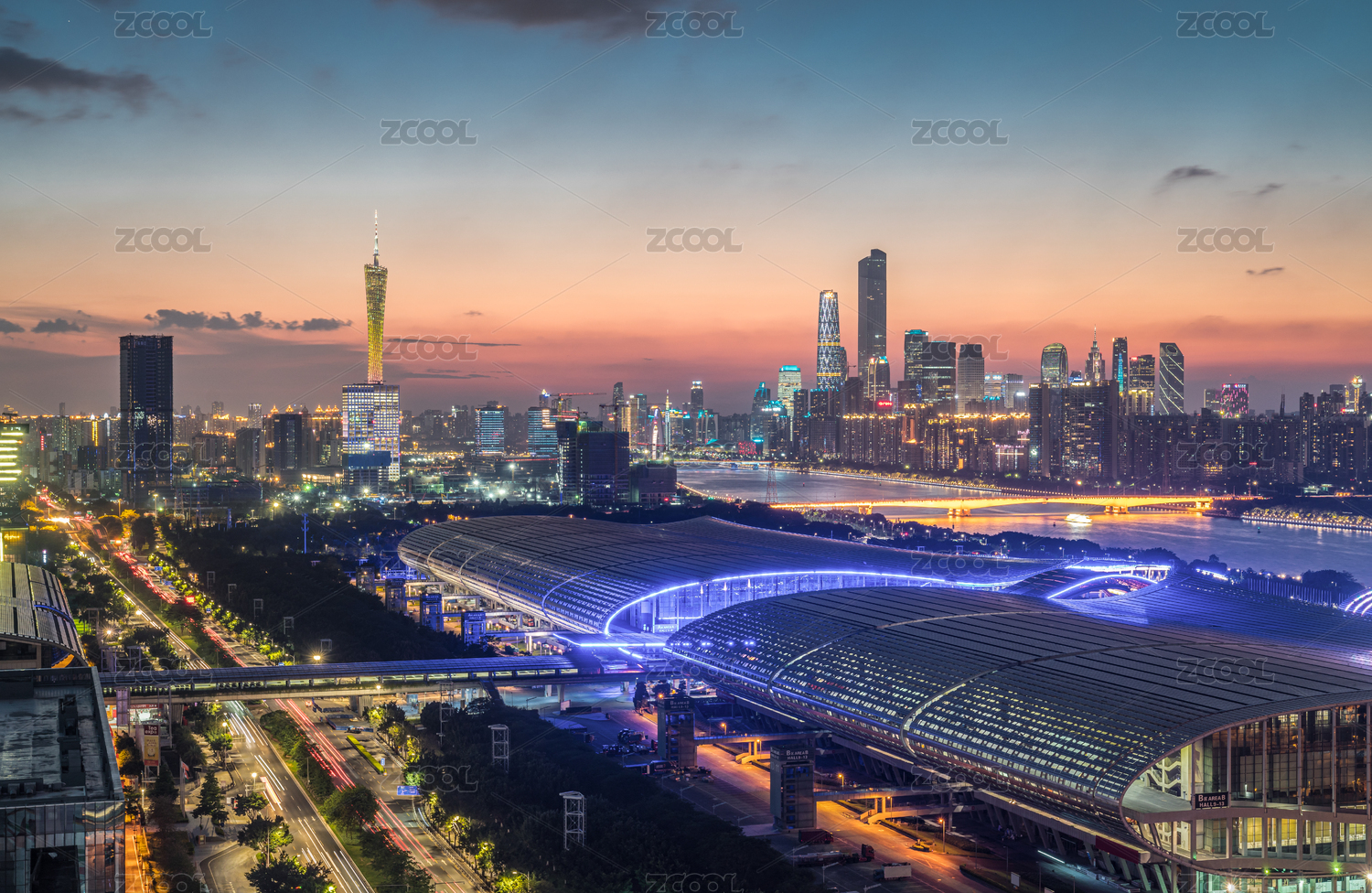 城市景观,经济发展,亚洲,南方,天际线,黄昏,中国,目的地,广州,现代