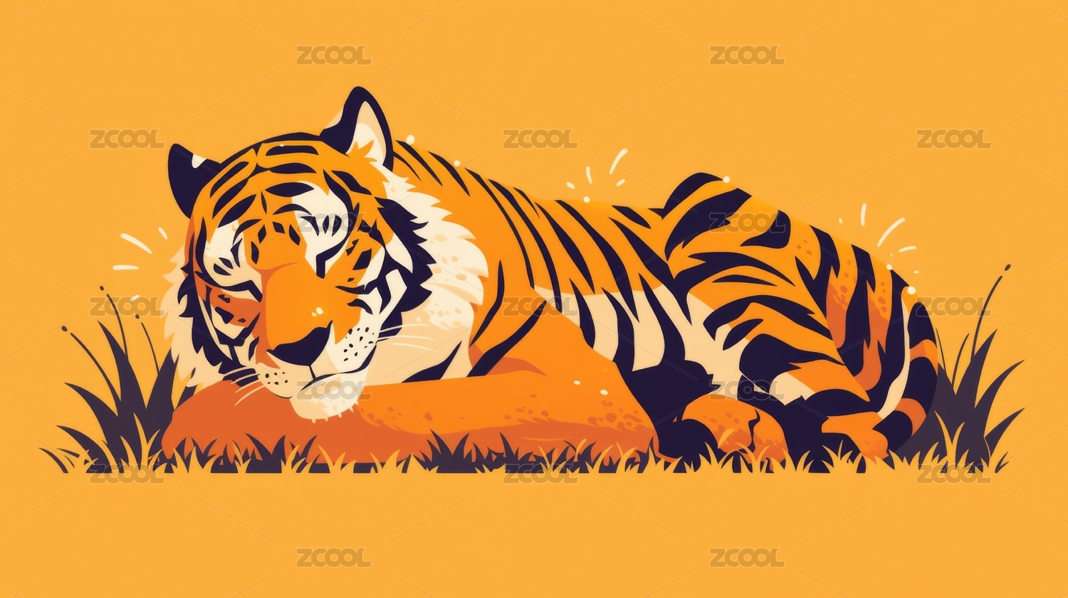 老虎,动物,插画,绘画,艺术,卡通,可爱,橙色,蓝色,背景