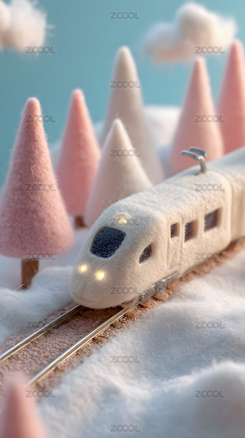 雪景,冬季,创意,三维,立体,3D,模型,火车,高铁,圣诞