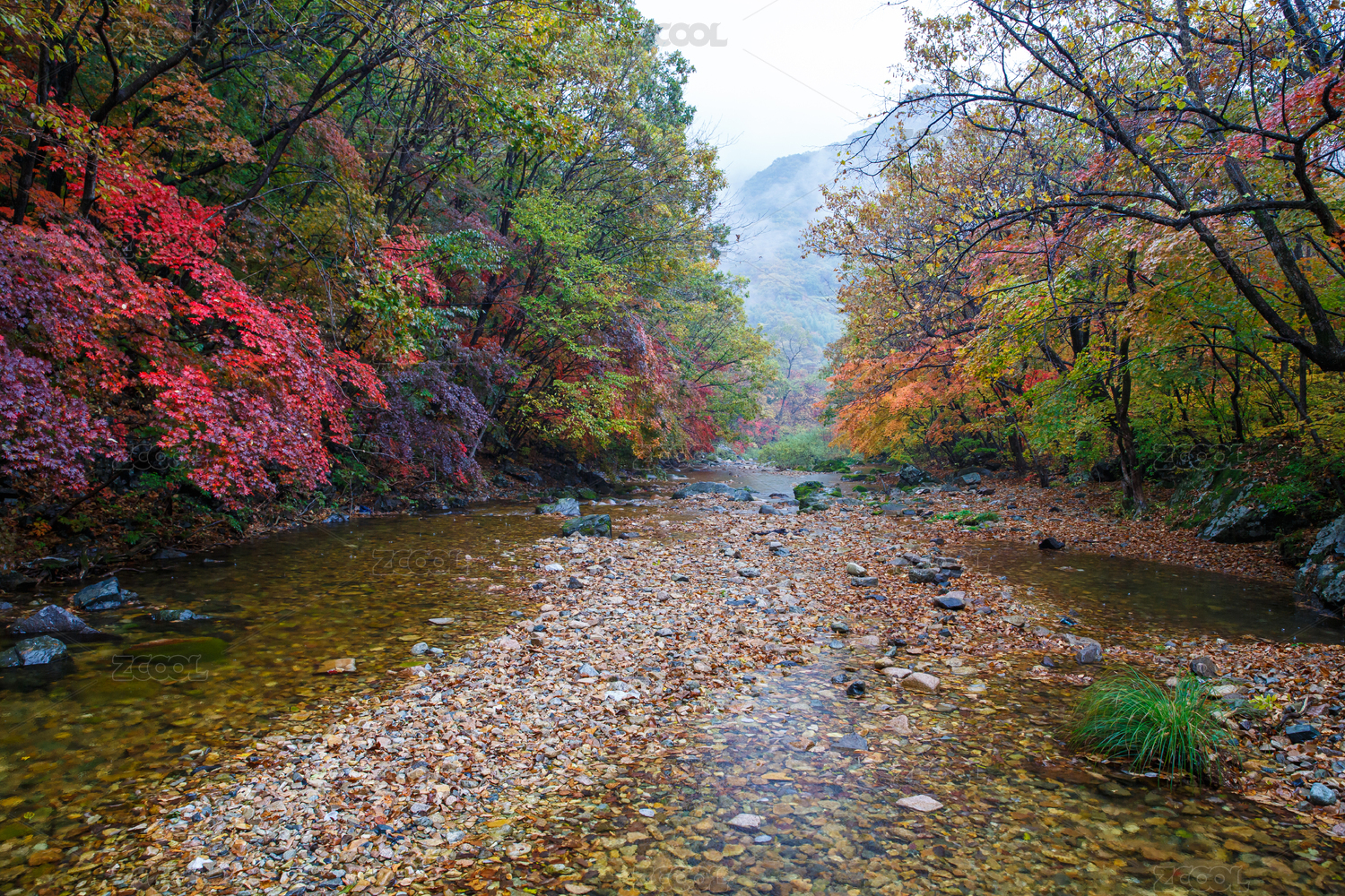辽宁丹东蒲石河森林公园秋天的红叶谷