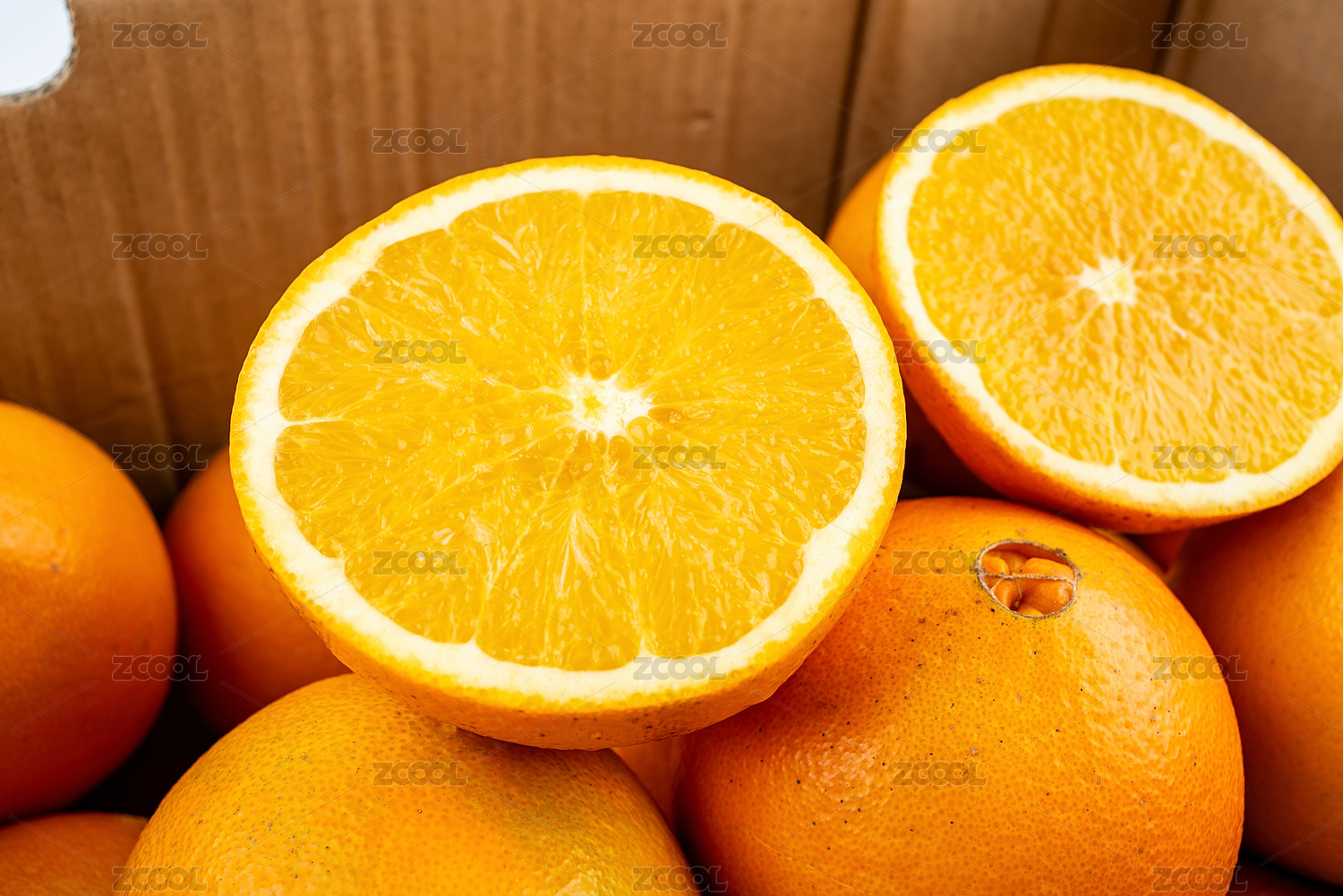 快递纸箱里的新鲜水果赣南脐橙果肉特写
