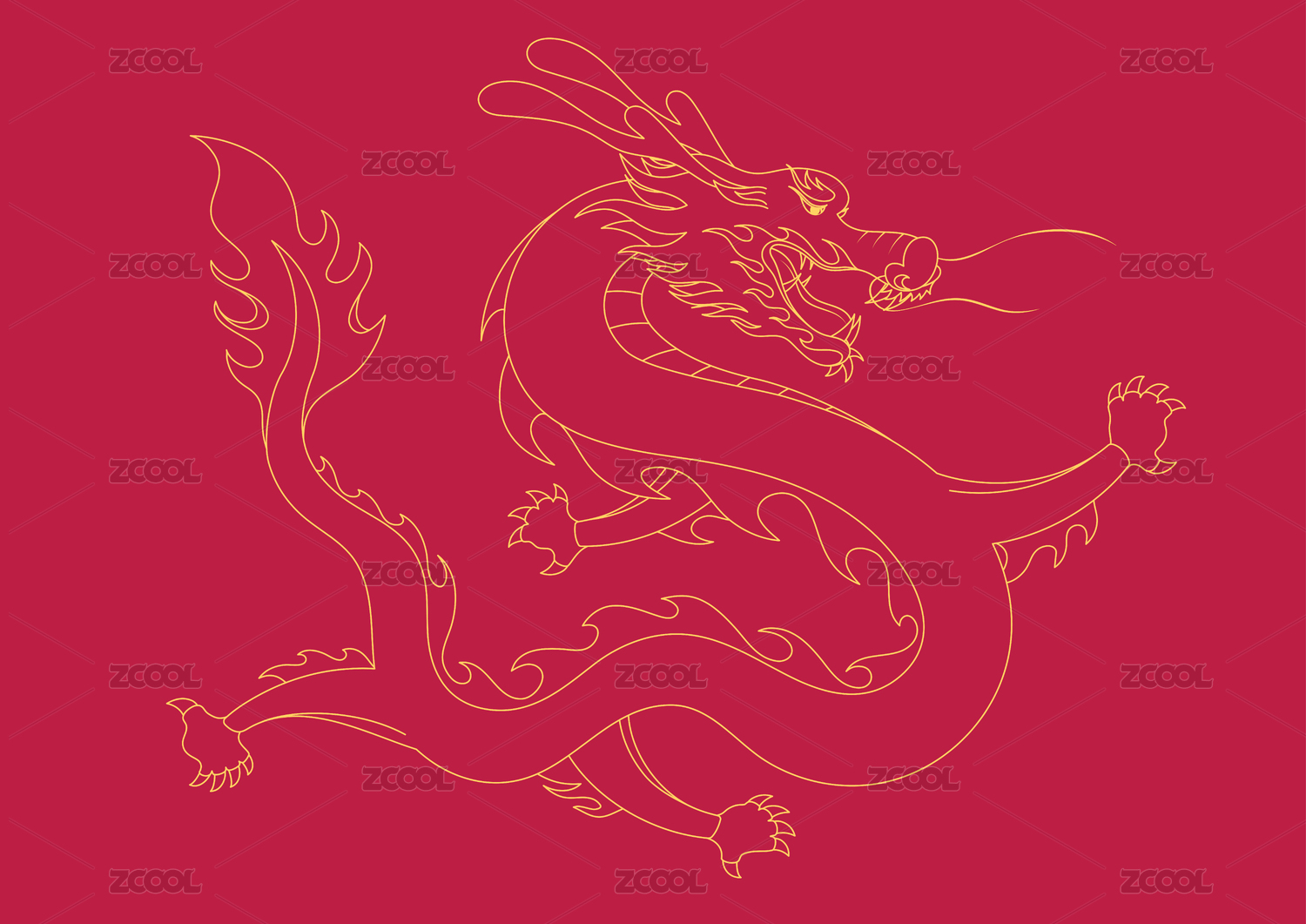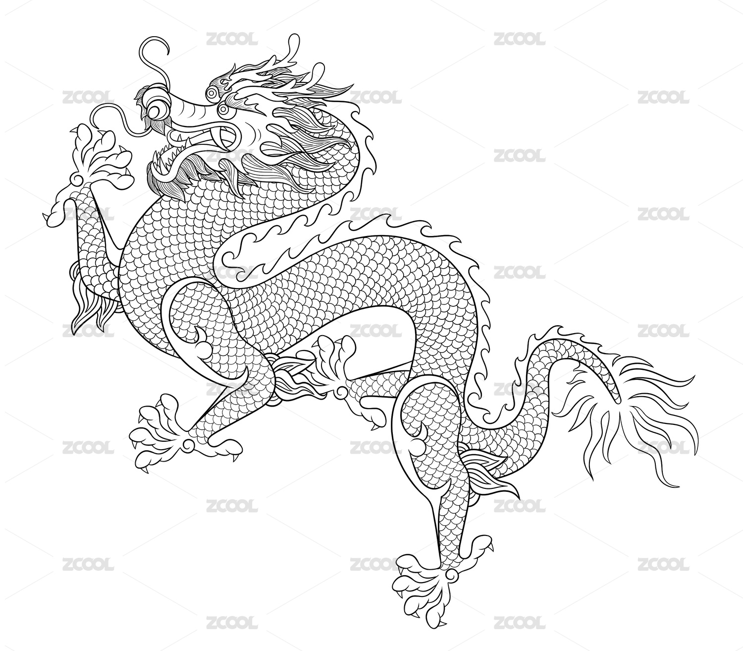 黑白线稿团龙矢量古典纹样传统文化底纹背景