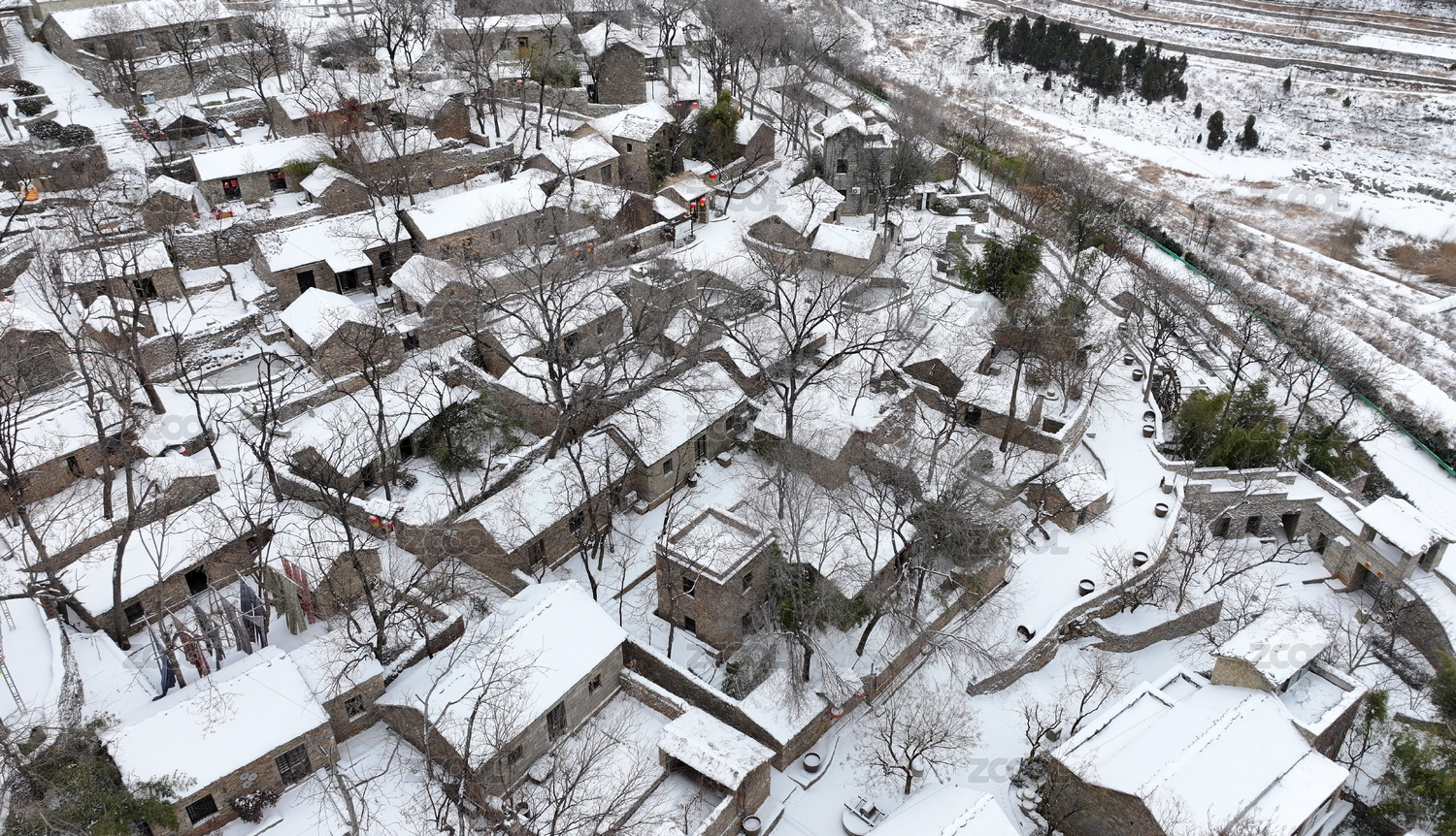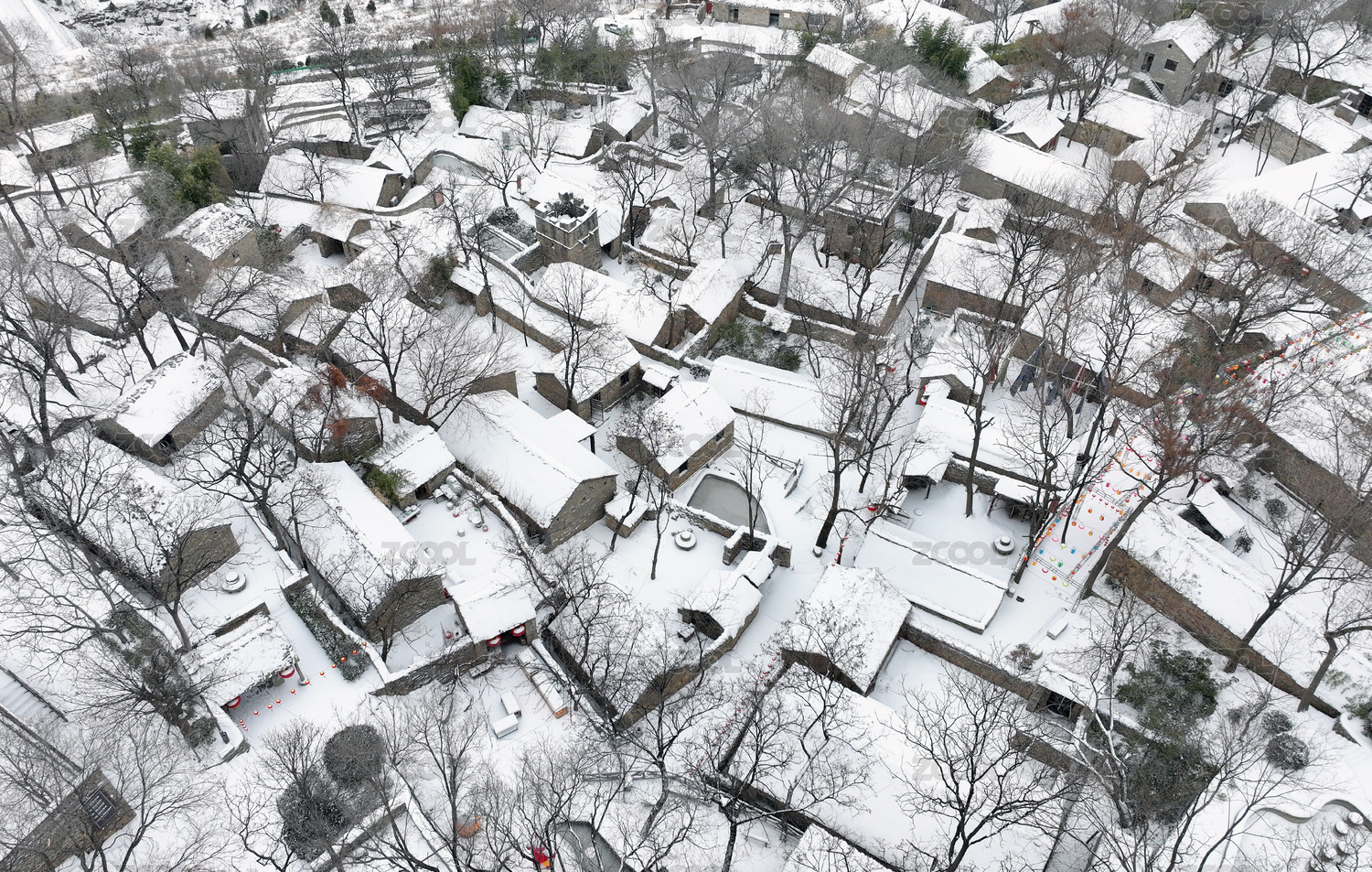 山东枣庄山亭区兴隆庄石板房古村落雪景