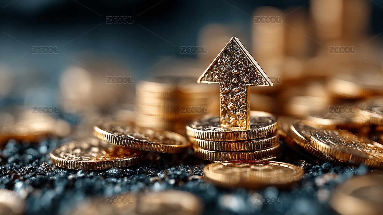 金币环绕的金色向上箭头