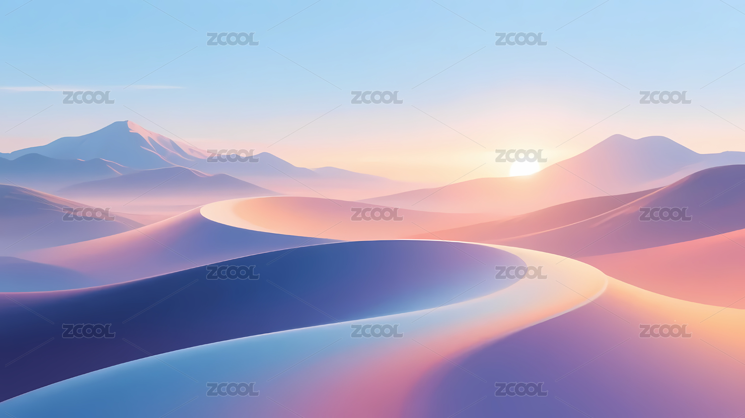 日落,橙色,紫色,唯美,插画,背景,粉色,沙漠,光影,风景