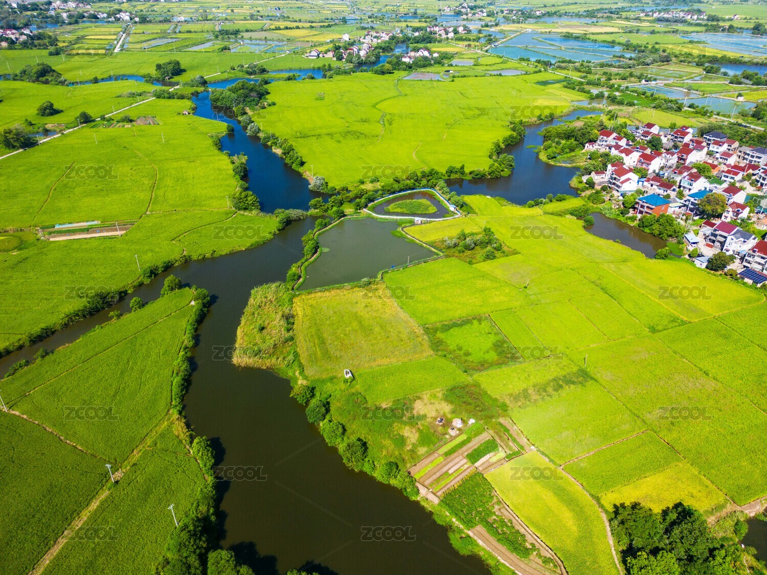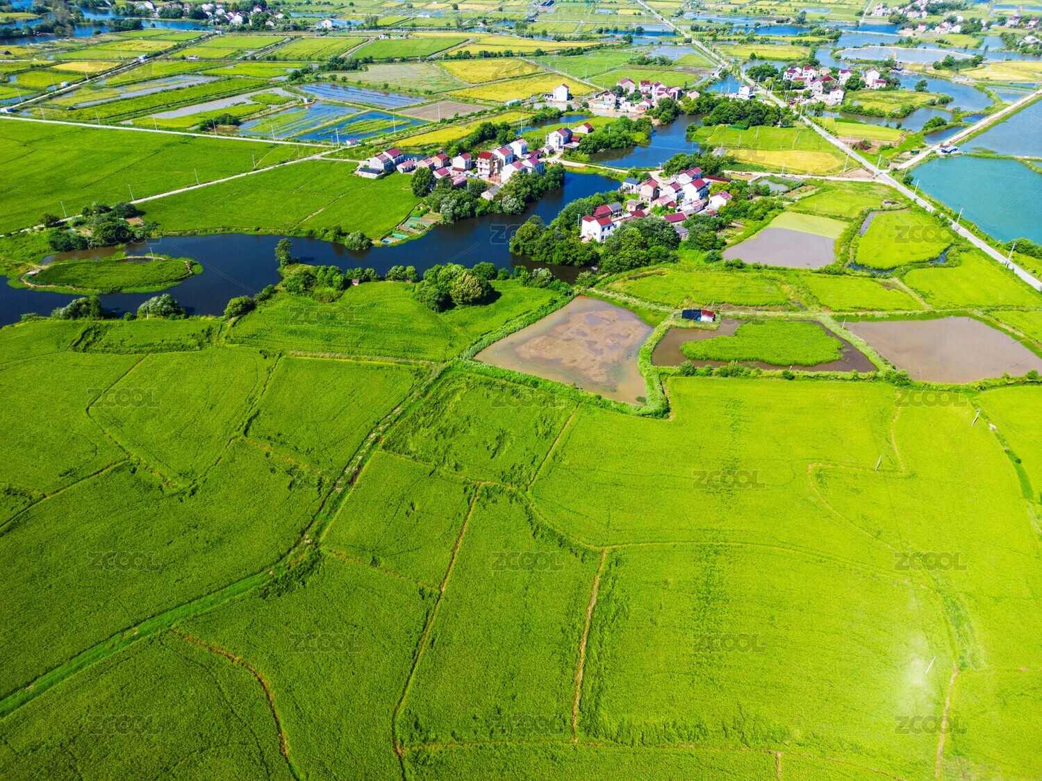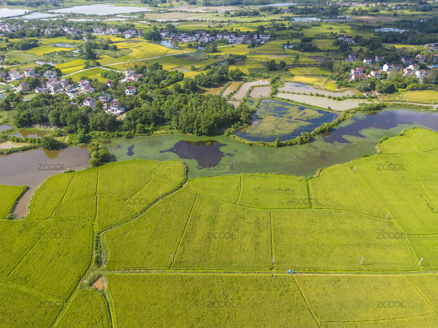 航拍中国安徽省宣城市郎溪县西郊初秋田园风
