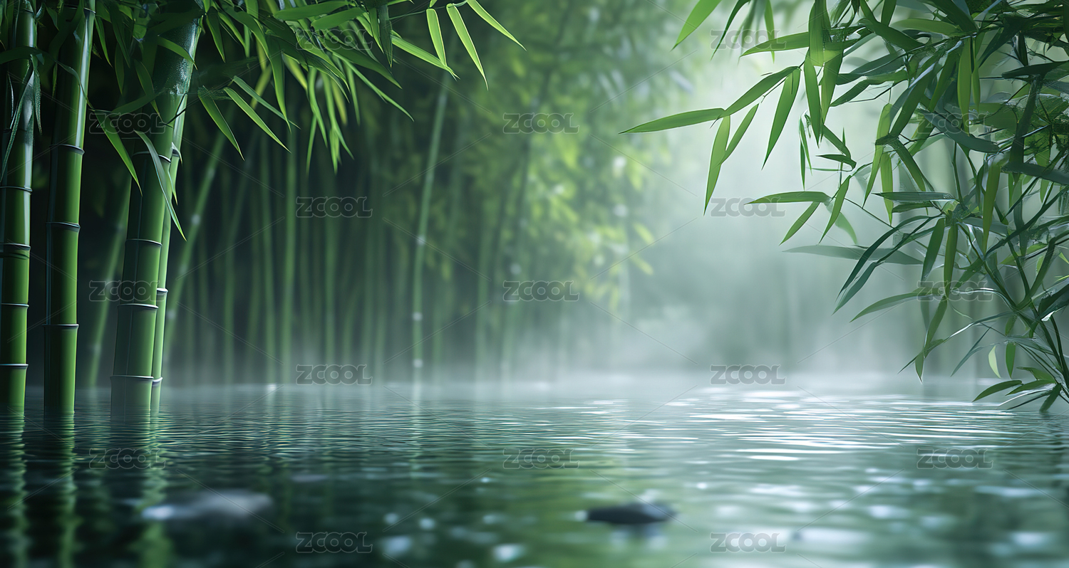 宁静的竹林水景