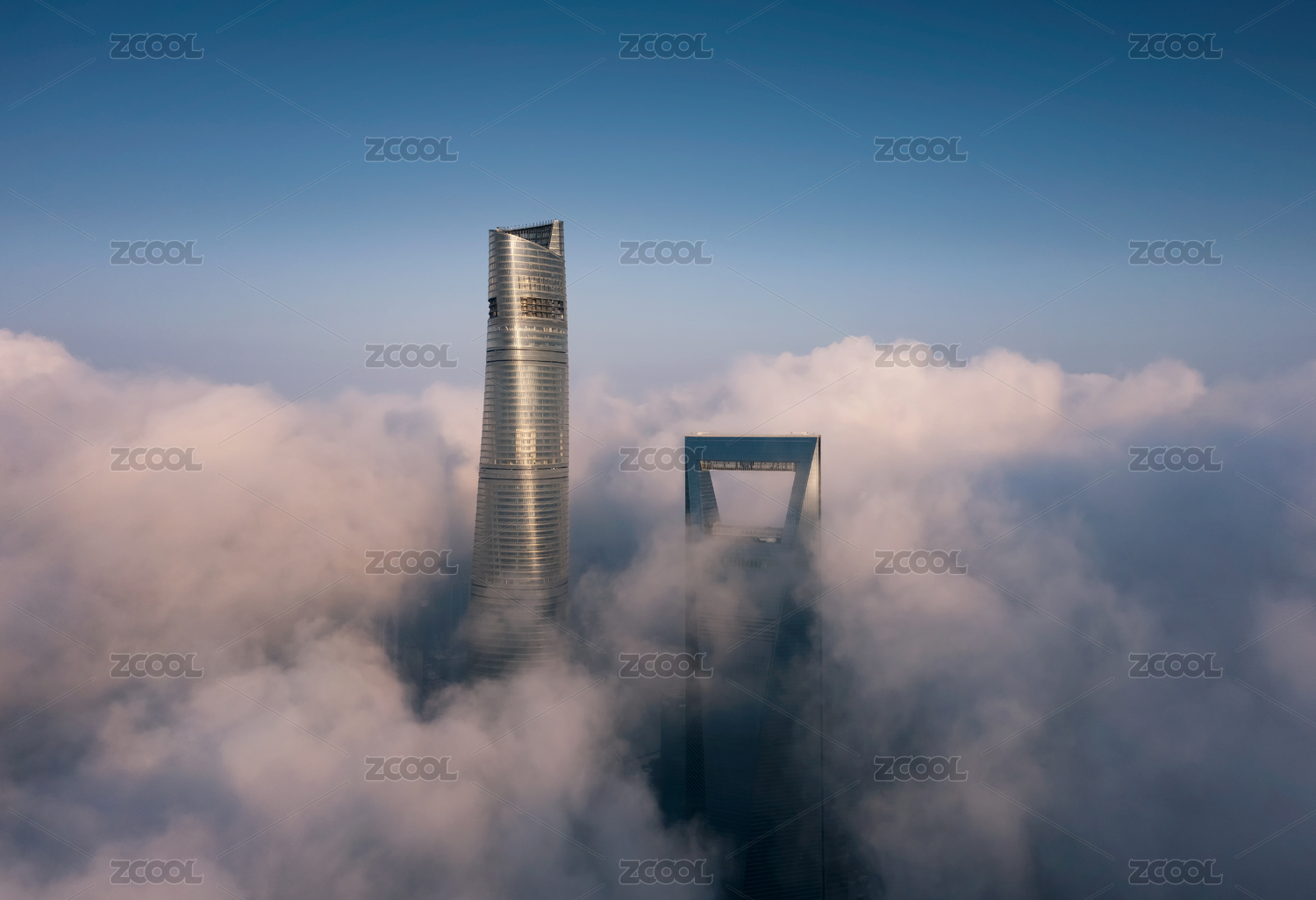 亚洲,东亚,中国,上海,平流雾,云海,雾,天空,蓝天,环球金融中心